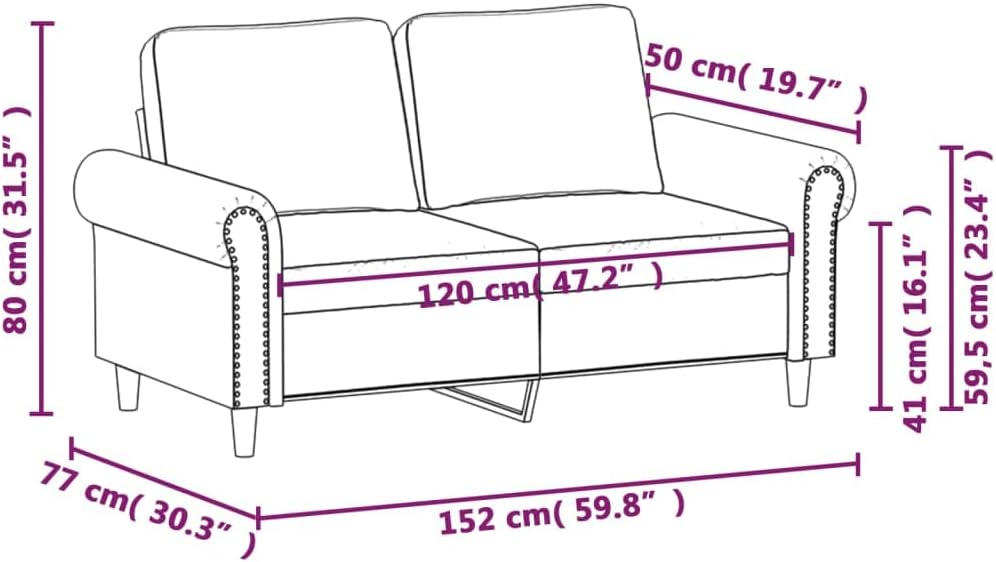 This 2-seater sofa, perfect for socializing, cleverly mixes comfort and style, creating a friendly vibe in any space. Made from smooth faux leather, its sleek black surface not only adds a bit of class but also blends well with different interior styles, turning your living room into a chic hangout for both quiet nights and lively parties.Exceptional Comfort: The sofa has a cushy bench cushion for a comfy seat, perfect after a long day.Sturdy Frame: Built on a strong metal frame for stability and support; this sofa can take daily use without breaking a sweat.Versatile Usage: Great for living rooms, offices, or anywhere you want to chill, whether for casual chats or marathon TV sessions.Stylish Finish: The matte black look gives it a modern twist, easy to clean and keep looking good.Compact Dimensions: At 59.8 in long, 30.3 in wide, and 16.1 in high, it fits nicely into lots of room setups while giving you space to lounge.Colour: Black Shape: RectangularMaterial: Farbic Artificial LeatherFinish: Faux leather gives it a smooth, upscale look.Indoor/Outdoor: Indoor OnlyCover Included: NoRoom: Living RoomCapacity: 2-seaterMaximum Number of People: 2Maximum Weight: 110 kgDimensions: 152 x 152 x 80 cm (W x L x H)Surface Height: 41 cmLeg Height: 13.5 cmWeight: 2209 kgSeat Depth: 50 cmSeating Capacity: 2Swings: NoDelivery Contains: 2-seater sofaAssembly Required: YesRecommended Number of People for Assembly: 2