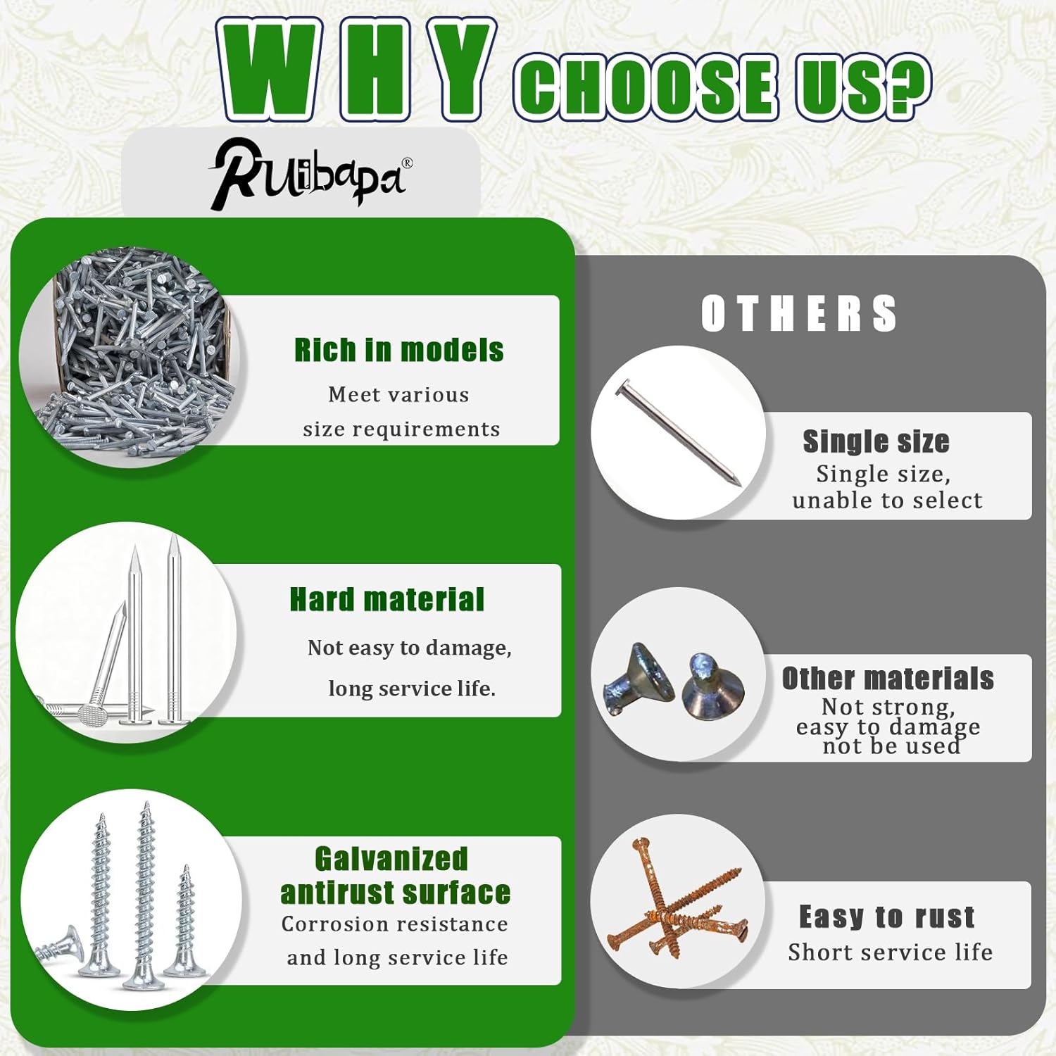 | Set Name | 2000Pcs Hardware Nails & High Hardness Wood Screws & Round Head Sheet Metal Screws Assortment Kit |