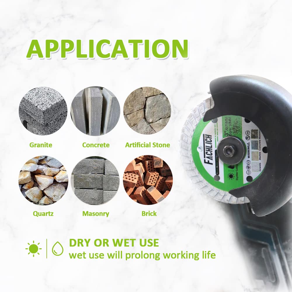 FACHLICH 3 inch Diamond Blade - Concrete Cut Off Wheel Granite Cutting Disc 2pcs 75mm for Concrete and Granite 3/8"(10mm) Arbor FACHLICH Ceramic Cutting Grinding Disc 4-1/2" Diamond Grinding Wheel for Beveling,Small Cuts,Grinding,Rounding Shaping Edges/Corners of Porcelain,Tile,Granite,Marble,Concrete
