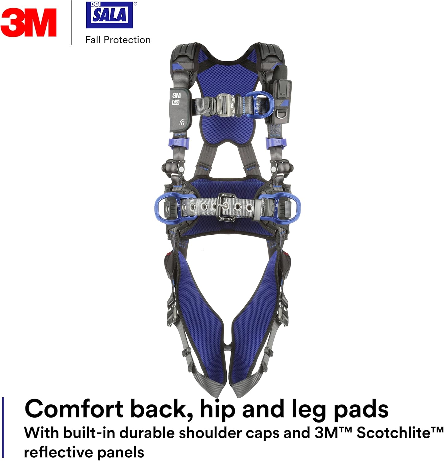 The 3M DBI-SALA ExoFit X300 is designed for those who refuse to compromise. The X300 harnesses are outfitted with high-quality components that have been developed to enhance the safety, convenience and performance for working at height on your job site. The X300 comfort harness is built with 6,000lb polyester webbing, robust nylon/polyester hybrid comfort padding with reflective 3M Scotchlite panels, and lightweight aluminum hardware. New technology in the Dorsal D-ring area helps workers make efficient connections and maintain a safe harness fit. Locking torso adjustment and quick-connect buckle options are available to optimize fit and worker experience. Select configurations are also available with exclusive weight distribution system to help reduce shoulder strain and fatigue. The 3M DBI-SALA ExoFit range of full-body harnesses is designed to help achieve optimal fit, function and efficiency while fulfilling the safety and performance requirements for the work you do every day. As you continue to raise expectations and reach new heights, the ExoFit has been elevated to help climb with you. ExoFit harnesses continue to evolve through engineering and worksite research, complemented by advances in new materials and technologies. We are expanding your choices, and with more than 400 new harness options to choose from, 3M DBI-SALA has your back and can help your team reach greater heights. Elevate your safety harness to the next generation of 3M DBI-SALA ExoFit X100, X200, and X300 to keep your workforce comfortable in uncomfortable places.