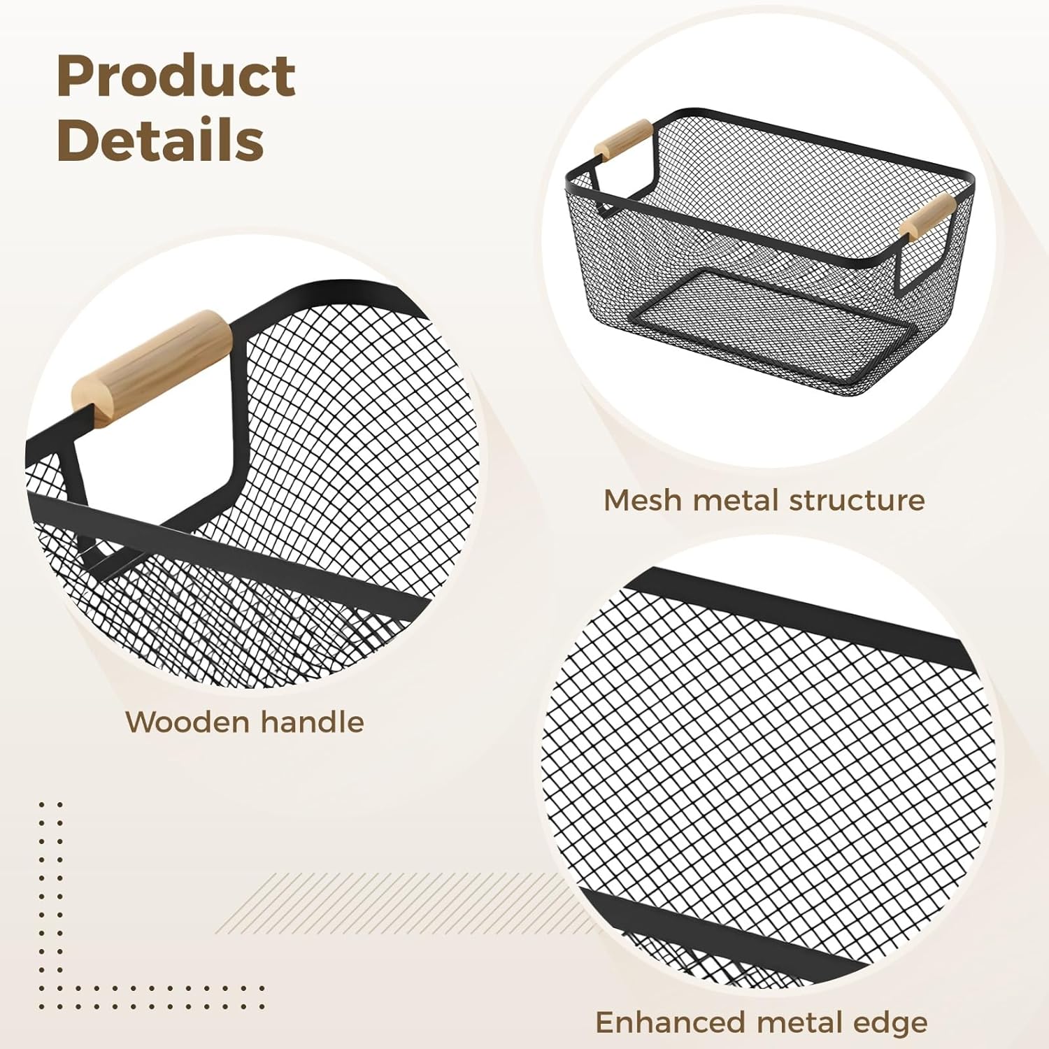 Spification:Color:blackMaterial:ironProduct Size: 10.24 in x 6.89 in x 6.89 inPackage Includes:metal wire basket x 4Note:1. Please refer to the measurement. Tiny measuring error is allowable in normal range.2.There might be a little color difference due to the monitor, camera or other factors, please refer to the physical item.