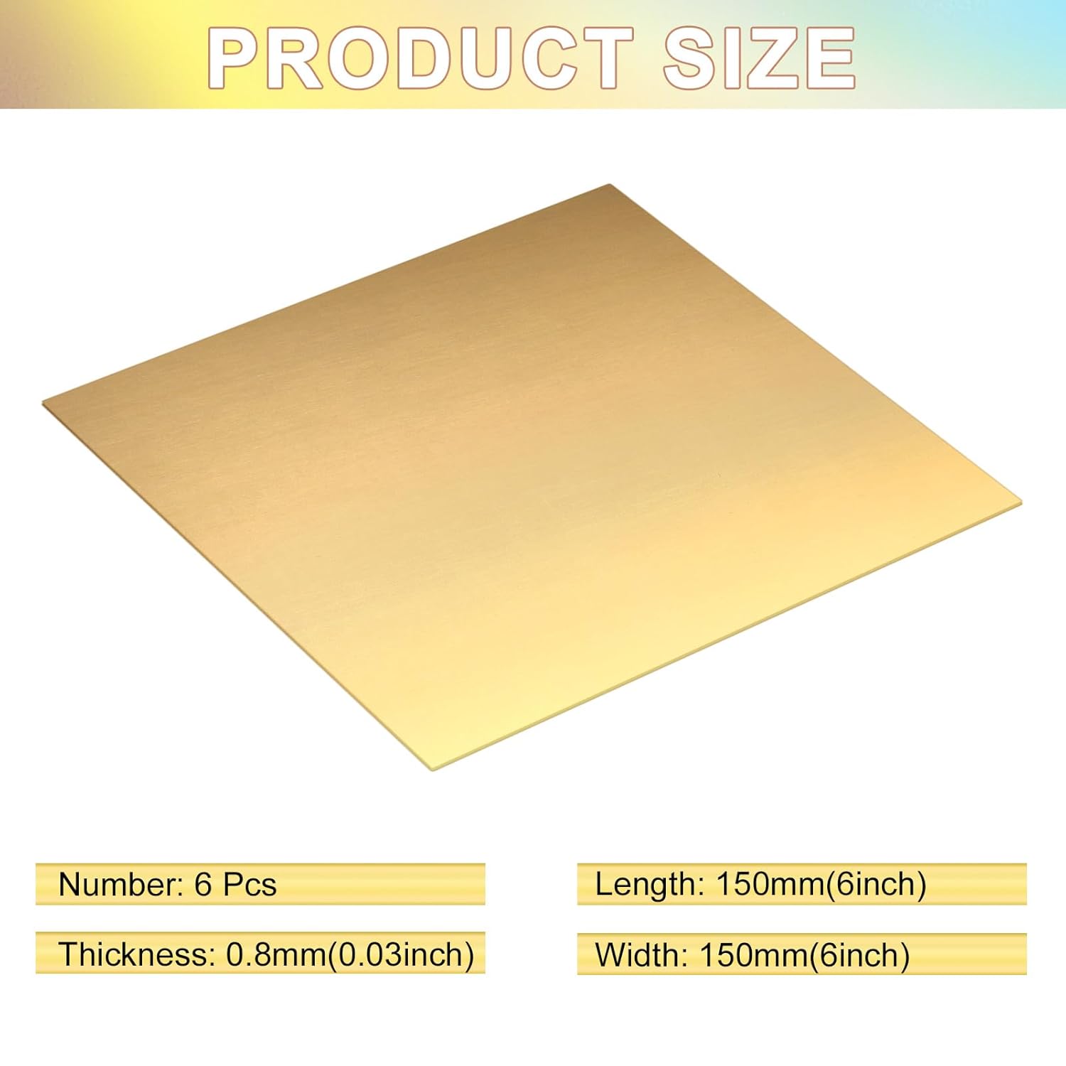 Features: Our 20 gauge sheet metal is well polished for a smooth surface, which is safe and will not easily scratch your hands, offering you a nice user experience. You can give these blank engraving brass plates to your family members, relatives, friends, colleagues or neighbor in need, and they will be delighted to receive such useful tools. Specifications: Material: brass Color: gold Size: approx. 15 x 15 cm/ 6 x 6 inches Thickness: approx. 0.8 mm/ 0.03 inch Package includes: 6 x Brass sheets Notes: Manual measurement, please allow slight errors on size. The color may exist a slight difference due to different screen displays. Please peel off the protective films before use for a better effect.