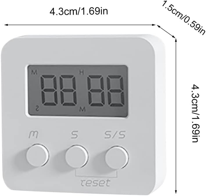Features:1.LOUD ALARM: the sound of "BiBi" lasts for 30s when the timer is count down to zero, and you could press the ST/SP to stop it.. Loud & clear sound but not deafening.2.MULTIPLE FUNCTIONS :The digital kitchen timer clock can both count up and count down in a range from 1 second to 99 minutes which makes it a timer for VARIOUS ACTIVITIES,3. timer for homework, tooth brushing time, exercise, gym workout, cooking, sports, study, games and classroom timer activities. Lightweight and fashion, very convenient to carry and use.4.【Count Up And Countdown, ON/OFF Switch】:On/off button. and use when needed, and close when not needed, saving electricity and protecting the environment.5.This digital kitchen timer can both count up and countdown in range from 1 second to 99 minutes and 59 seconds.Package Included1 * Kitchen TimerNotes:Due to the light and screen setting difference, the item's color may be slightly different from the pictures.Please allow slight dimension difference due to different manual measurement.Large LED Display: Numbers allow you to see more clearly.