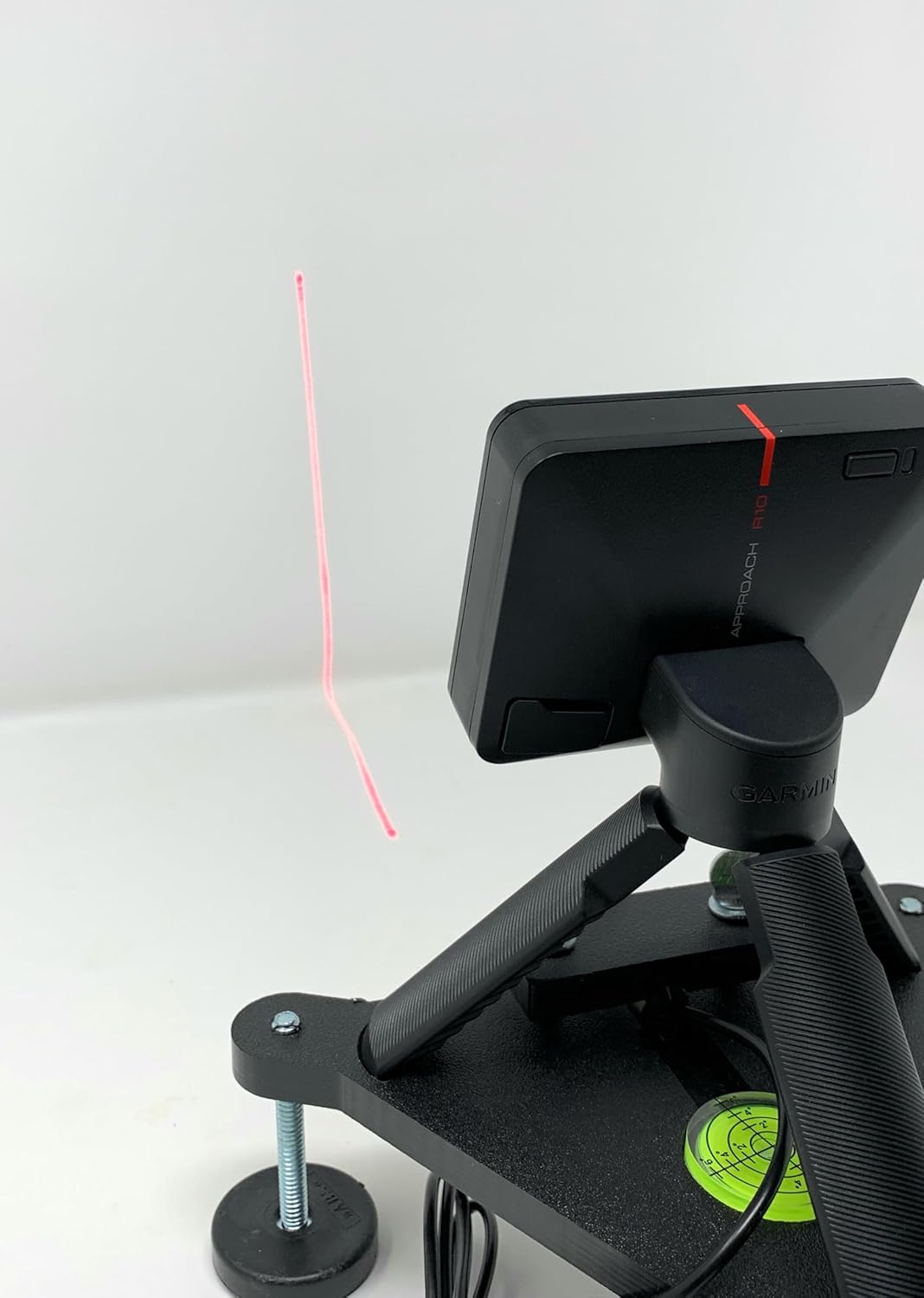 Leveling Stand for the Garmin Approach R10. Garmin R10 and Alignment Sticks are not included. This stand is designed for the Garmin R10. It has been machined on a precision CNC Router to maintain high tolerances. The adjustable legs allows you to dial in the base to be level. Center of the base allows you to clamp the included USB laser or an alignment stick (not included). The base is cut from a marine grade plastic and can be used indoors and outdoors. USB Laser is included. Alignment stick is NOT included. Garmin R10 is NOT included.