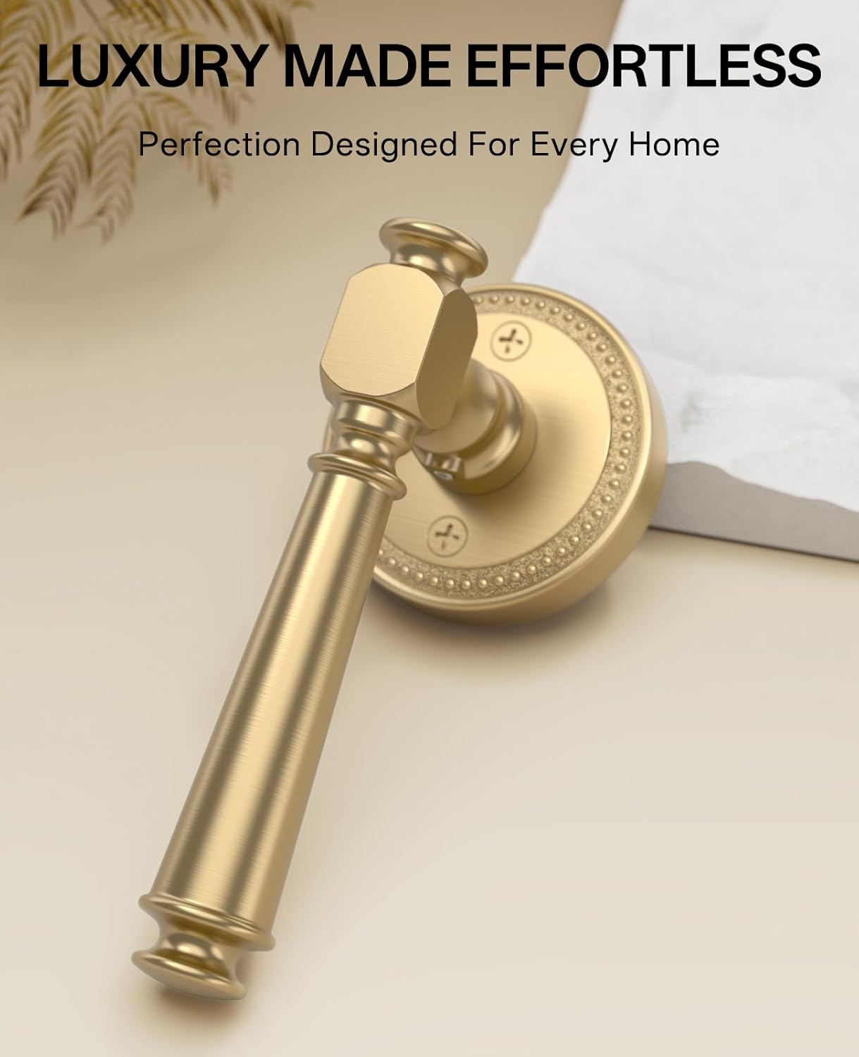 Amerdeco 2 Pack Champagne Bronze Dummy Door Handles, Decorative Non-Turning Door Lever with Door Knobs for Closet, French Double Doors, Pantries & Interior Push/Pull Doors.AM0034