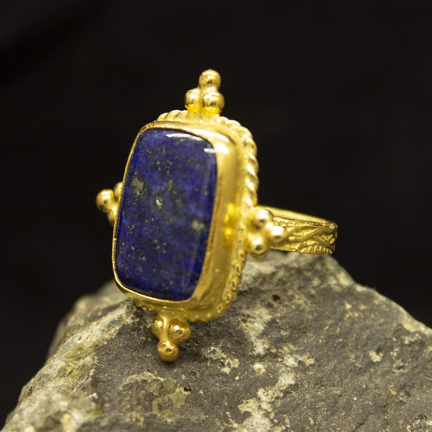 Ancient Art Lapis Lazuli Ring | 24K Gold Plated | Tree Bark Silver Ring | 925 Sterling Silver | Dainty Ring | Vintage Gift by Pellada