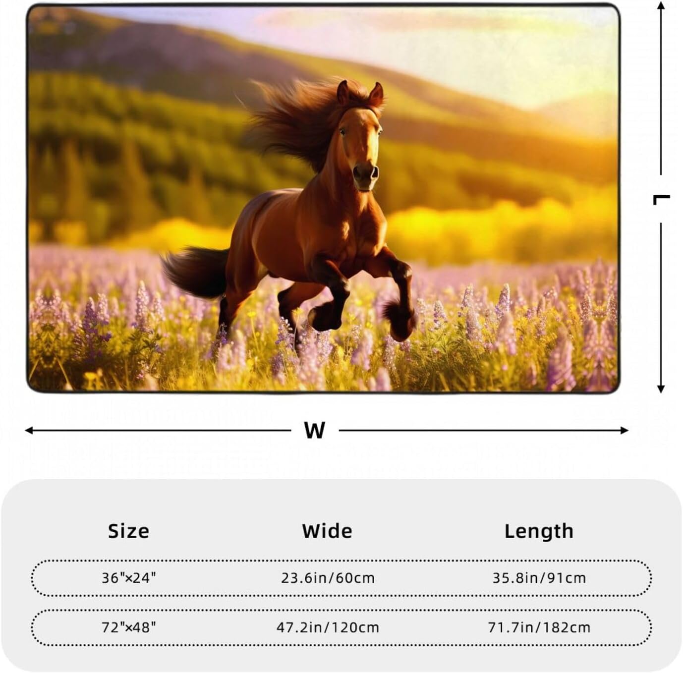 Transform your home with the exquisite WZYWHJ Brown Horse Printed flannel carpet floor mat 72"x48" . Crafted from high-quality flannel fabric (polyester), this carpet boasts a high density space elastic cotton interlayer that is not only absorbent but also incredibly soft to the touch. The delicate fluff texture adds a touch of luxury while ensuring no pilling or fading over time. The innovative middle layer features a high-density memory sponge that effectively relieves foot pressure, making it a comfortable choice for any room. Suitable for a wide range of scenarios including living rooms, offices, coffee tables, beds, and balconies, this carpet floor mat offers versatility and style. The bottom of the mat is made of non-woven fabric and plastic, providing an anti-slip and durable foundation. Easy to clean, wear-resistant, and lint-free, this WZYWHJ carpet is the perfect blend of comfort, functionality, and durability.