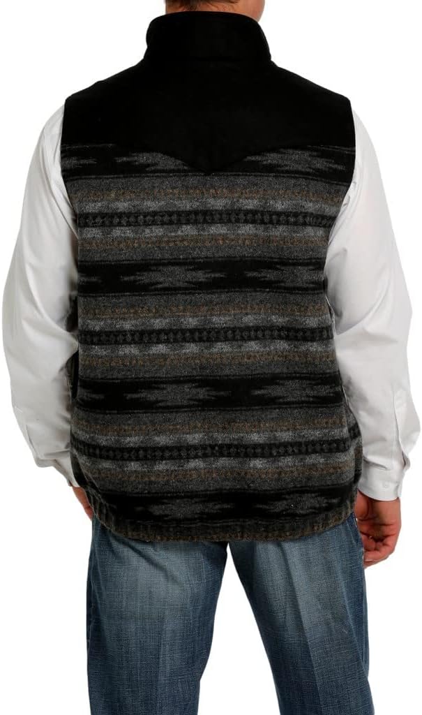 . Shell: 70% Polyester / 30% Wool fleece : Sleeve Lining: 100% Polyester. Zip-up front closure. Blanket stripe lining. Metal logo patch on left chest. Two lower front hand pockets with zip closure. Concealed carry pocket. Durable water repellent finishSouthwestern print patternMachine wash cold and line dry