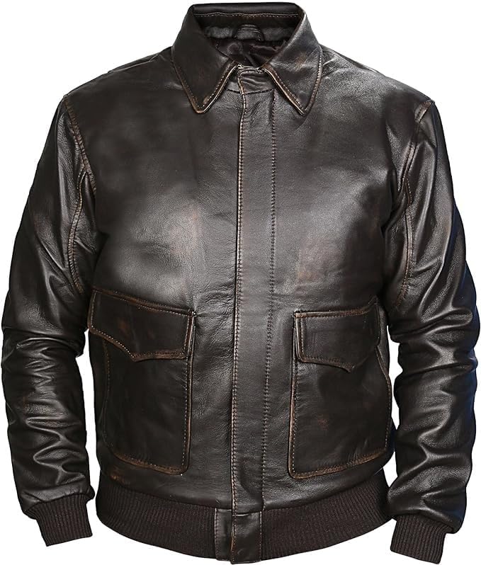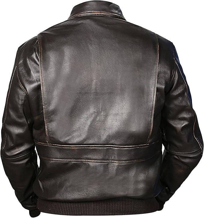 Step into history with our Cockpit Pilot A2 Aviator Jacket | WWII RAF Aviator Black Air-Force A2 Military Genuine Sheepskin Leather Distressed Bomber Jacket for Men's, meticulously crafted to honor the legacy of RAF aviators. Made from genuine sheepskin leather, this distressed bomber jacket embodies the rugged elegance of military aviation attire. The classic bomber silhouette features a ribbed collar, cuffs, and hem for a snug fit, ensuring comfort and warmth in any weather. Inspired by the iconic WWII aviator jackets, this piece combines vintage style with modern durability, making it a timeless addition to any wardrobe. Whether you're a history enthusiast, a fashion aficionado, or simply appreciate quality craftsmanship, our A2 bomber jacket promises unparalleled authenticity and sophistication.