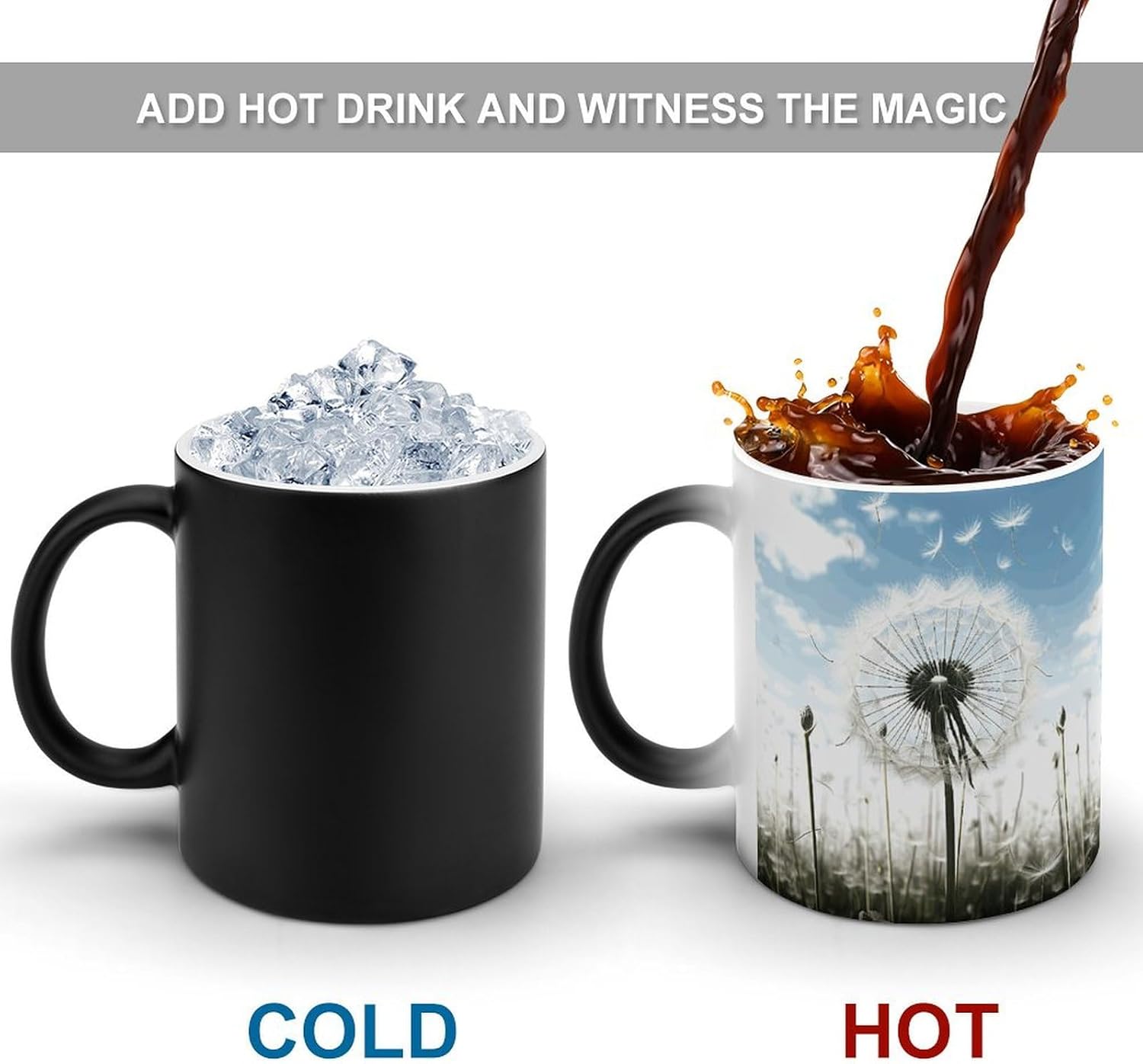 The personalized color-changing cup is made of ceramic, which feels as soft as jade and gives people a comfortable and friendly texture. Its good heat preservation performance can lock the temperature of coffee for a long timeFunny pattern print design, when filled with hot water, the cute pattern will appear and the colors will become bright.This color changing art coffee tea mug are a fun and unique addition to any home or office, adding a touch of fun to any table setting