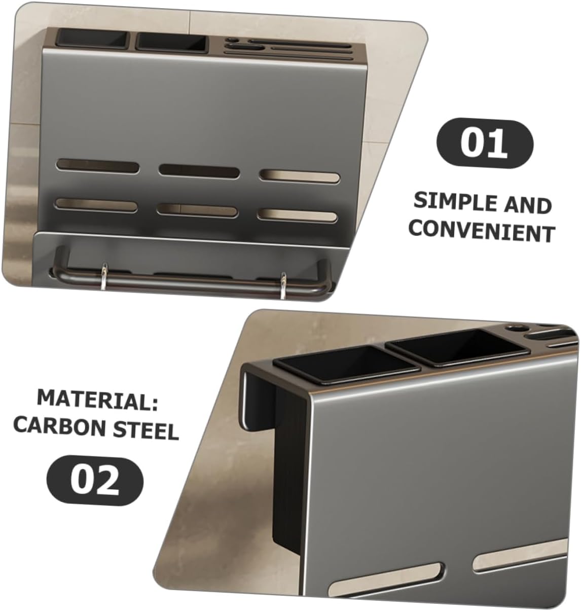Package List 1 x tableware rack 1 x hang buckle 2 x spoon fork cups 1 x glue 2 x auxiliary sticker 2 x screws 2 x anchor bolts Features -Size:27.50X21.00X15.00cm/10.81X8.25X5.89in kitchen wall mount utensil rack -Material:Carbon steel Daily Use Cutlery Holder -Color:Grey Wall Cutlery Holder - cutlery of different sizes, holding spoons, forks, chopsticks, and other small utensils, and store a cutting board cutlery organizer. -Contemporary look blends well with most modern design style, which is decorative. Can be used as a housewarming present to your friends, they will Kitchen Chopstick Holder. -There are drain holes below of the utensil holder for utensil to dry, and can draining water conveniently spoon organizer. - You can also install this cutlery organizer on wall, which can help to save desktop space tableware holder. -Wall Chopstick Holder has simple and fashion design, elegant and beautiful, it will not take much room kitchen cutlery holder rack.Goods Informationwall organizer for kitchen This kitchen Chopstick Holder, made of reliable material, stable and .Daily Use Cutlery Holder The bottom with the draining hole design, easily discharge water.tableware wall storage rack Simple design, multi-functional, it can be used to store cutters, chopsticks, spoons, forks and other kitchen utensils.chopsticks storage is very convenient for you