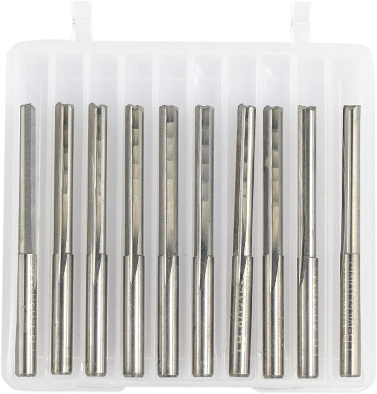 end mill10pcs 3.175mm Shank CNC Router Bit 2 Flutes Straight Milling Cutter Tungsten Carbide End MillFeatures:Can cut engrave remove chips fluently and create a smooth cutting surface.High strength and hardness.Specification:Type: Straight End MillMetrial: Tungsten SteelCutting Diameter: 3.175mm(1/8'')Shank Diameter: 3.175mm(1/8'')Suitable: Wood Mdf Acrylic Pvc EVA Foam PlywoodApplication: Engraving Cutting Milling Slotting etcNotePlease allow 1-3mm error due to manual measurement.Due to the difference between different monitors the picture may not reflect the actual color of the item.Package Including:10pcs Straight End MillDear customersThe estimated delivery time for our products is 7 to 21 days.If you have not received your order within 30 days please contact our customer service.If you have any questions please contact us we will reply you within 24 hours veryYour satisfaction makes us the last wish I wish you a happy shopping