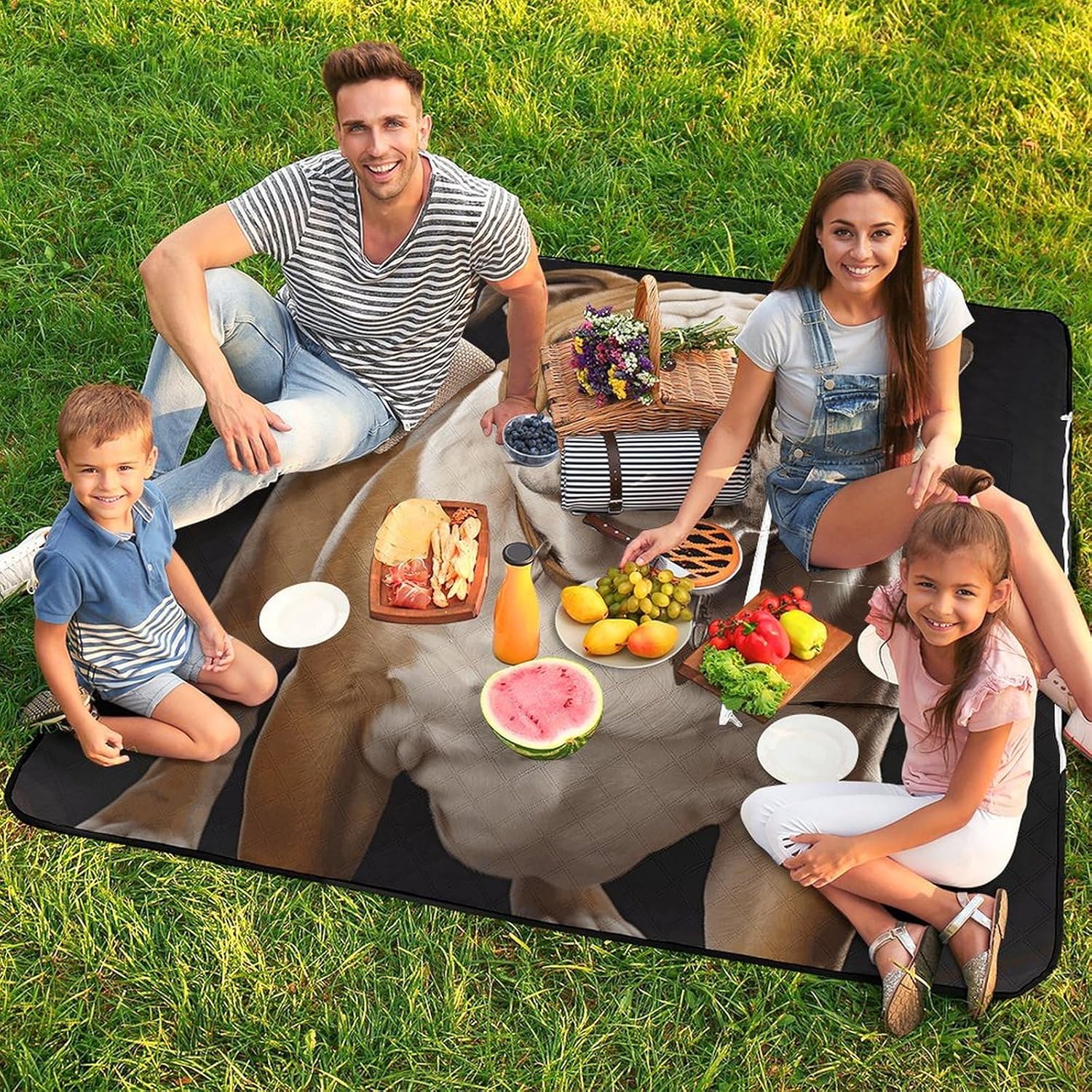 The picnic blanket ,we've only used the highest quality materials, so every picnic is an experience .The underside lining is very sturdy and therefore suitable for every surface. No more worrying about dirty or wet bottoms when you are sitting on damp grass. The English-Bulldog blanket protects you from water, dust and dirt.A large capacity bag and a picnic blanket, 2in1. It has a large capacity and one bag can hold everything you need for going out. You choose the place you want to lie down, and this bag can be turned into a comfortable picnic blanket in seconds also it can fold into tote bag, which is waterproof, sand-proof and wear-resistant.Therefor,you can take it to nearby parks, campuses, beaches or lawn, anywhere you want to lie down.