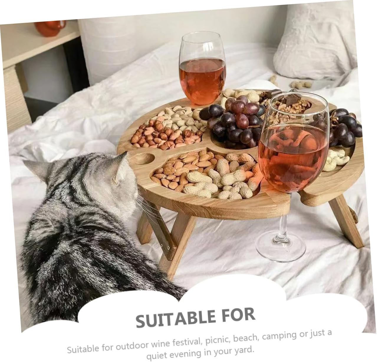 Package Include 1 x Camping Folding Table Characteristics -Material: Wood grilling table -Color: Light Brown picnic table -Size: 30.00X30.00X15.70cm/11.79X11.79X6.17in outdoor picnic table Folding Desk -Can be used as red wine table, fruit wooden table, outdoor table, picnic dining table, multi-functional camping dining table. -The wine table is a must have for all wine lovers, giving them a comfortable and convenient using experience. low beach table - for outdoor wine festivals, family picnics, camping, beach or just a quiet evening in your backyard. foldable table beach -The whole appearance design of product is simple and generous, present to your friends camping low table. -With enough storage space, wood material, sturdy and safe to use portable picnic table.Goods Descriptionpicnic table This item is a table specially designed for storing wine, wine glasses or other food, with different storage areas on the surface, it can be used to hold your wine glass, snack dishes and wine bottle without easily falling off