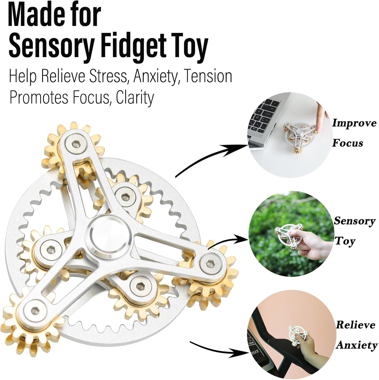 Fidget spinners have taken the world by storm, and this mini metal gear spinner is the perfect pocket-sized companion for adults seeking a discreet way to relieve anxiety and stress. Crafted from high-quality copper and aluminium alloy, this tiny fidget toy is both durable and visually appealing. Its silent operation ensures you can spin it anywhere without disturbing others, making it an ideal EDC (everyday carry) item. Whether you're at work, in class, or simply need a calming distraction, this compact fidget spinner will keep your hands occupied and your mind focused. Its smooth ball bearings provide a satisfying spin, while the gear design adds an intriguing visual element. Small enough to fit in your palm, this fidget spinner is a must-have for anyone seeking a subtle yet effective way to manage anxiety, stress, or restlessness.