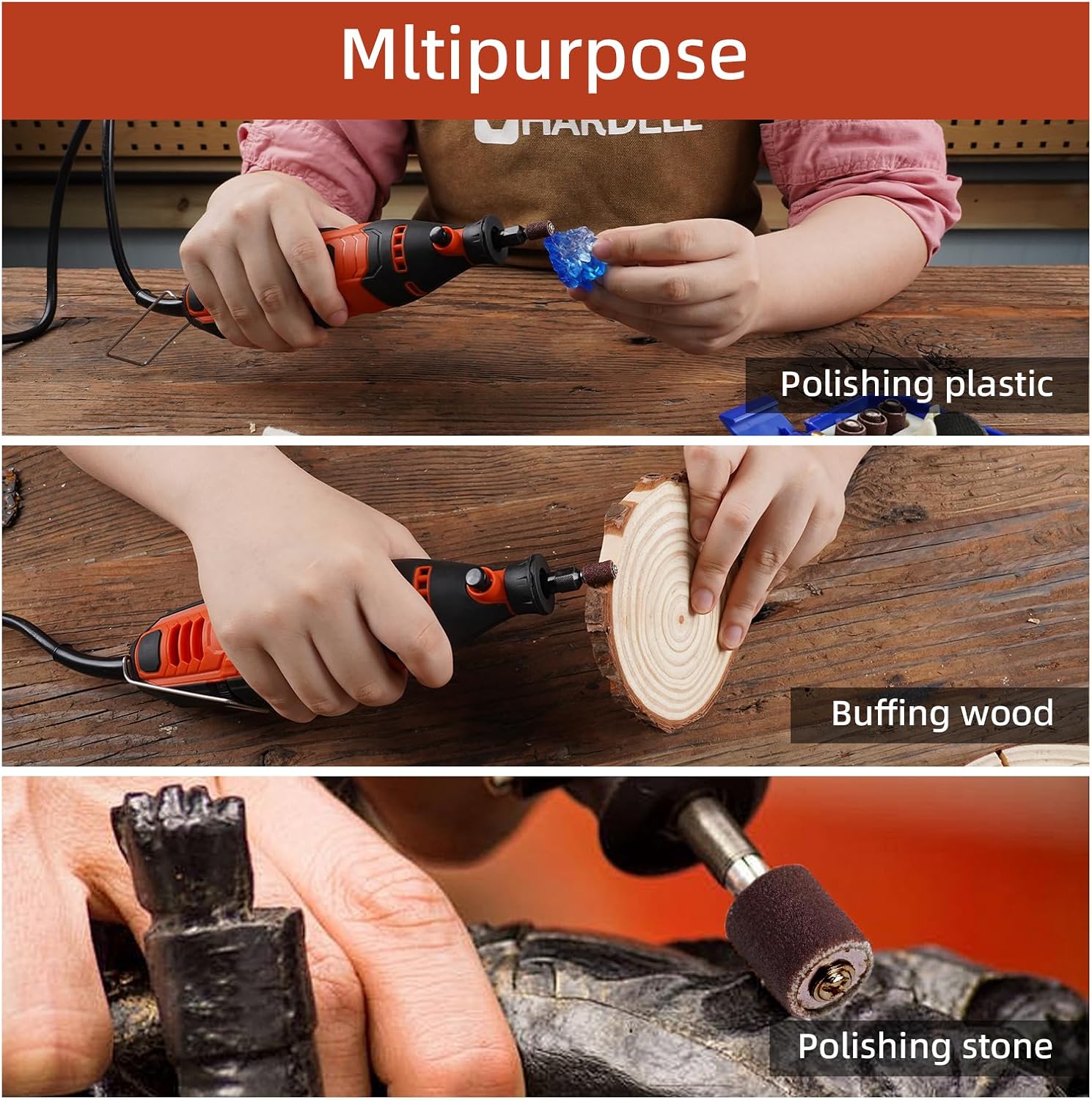 【EXPERIENCE THE POWER OF CORDLESS】- HARDELL rotary tool delivers significant power with the help of its rechargeable battery and 12-volt motor, that make it as powerful engraver, sander, grinder, polisher, 6 convenient speeds (5000-30000rpm) meets craftsman needs. 【VERSATILE TOOL FOR MULTIPLE MATERIALS】- Our cordless rotary tool kit comes with 94 accessories, including grinding stones, sanding pads, felt wheels, etc. The number and variety of accessories make it a perfect tool for crafters working with multiple materials, the plastic case ensures easy storage and organization for all accessories. 【LIGHTWEIGHT AND CONVENIENT】- Our rotary tool weighs only 1.1 pounds and measures just 12 inches, making it a great option for those who want a cordless and lightweight tool. It has minimal vibration and sound, ensuring you won't feel any discomfort while working. 【PERFECT PRESENT FOR DIY ENTHUSIASTS】- All rotary tool kits come in a high-quality polyester fabric tool bag, making it easy to carry and store. A great present for Christmas, birthdays, Thanksgiving, Father's Day for parents, friends and loved ones who like DIY and craft projects. 【HIGH PERFORMANCE AND HOME ESSENTIALS】- The rotary tools are small yet powerful handheld devices, Two collet sizes accept a wide range of bits and attachments, perfect for various household tasks, ranging from repairs and maintenance to crafting, hobbies, and even pet care.