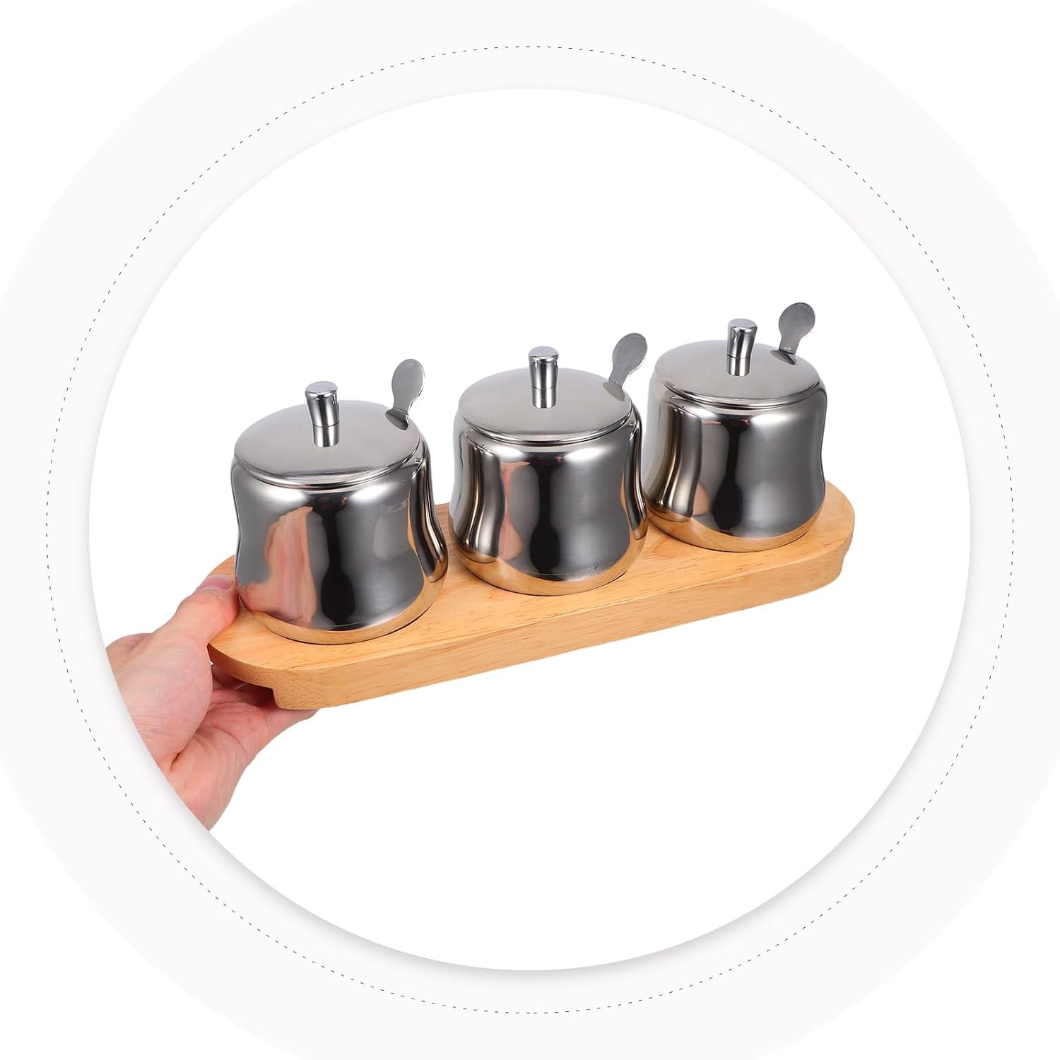 Description This stainless steel condiment pot combines practicality and aesthetics, providing a refined solution for seasoning storage. Its thick material promotes stable use, while the clear lid provides visibility for quick identification of contents. suitable for home kitchens, this condiment box set helps organize spices efficiently, making it a must-have for cooking enthusiasts seeking convenience and style. Features -Color:Silver -Material:Stainless steel -Size:31.00X11.00X11.00cm/12.18X4.32X4.32in - construction: made from stainless steel, these condiment jars are built to last, ensuring they can handle the demands of daily use -Luxurious design: the stylish design of these stainless steel condiment pots set adds a touch of elegance to your kitchen, making it an enjoyable space -Leakproof sealing: these seasoning containers with lids offer excellent sealing performance, keeping your spices fresh and preventing moisture from affecting their quality -Ideal for home kitchens: these stainless steel seasoning jars are suitable for home use, allowing you to store and organize your spices in a neat and orderly manner -Convenient access: these cooking condiment jars provide easy access to your spices, making your cooking process more efficient and enjoyable