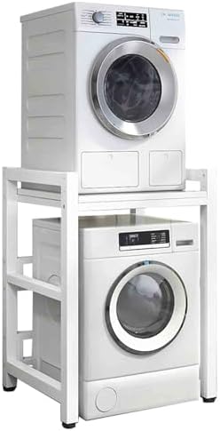 Introducing the versatile 2 Tier Washer Dryer Stacking Rack, your ideal solution for laundry organization. Perfectly designed for front load washers and tumble dryers, this adjustable dryer stand combines functionality with elegance, helping you maximize your laundry space. With a robust capacity of up to 350kg, this washer storage rack is perfect for keeping your laundry area neat and clutter-free. Made from high-quality solid wood particle board and a sleek baking paint steel frame, it not only optimizes your storage but also adds a stylish touch to your laundry room. Standing at 105cm tall, the rack offers three adjustable shelf heights (100cm, 95cm, and 90cm) to cater to your unique storage needs. The carefully designed dimensions include an outer width of 75cm and an inner width of 65cm, while the depth measures 65cm on the outside and 60cm on the inside, making it a great fit for various spaces such as bathrooms, kitchens, and balconies. This storage solution transforms your laundry routine, keeping essentials like detergents and fabric softeners easily accessible. The Dryer Stand not only enhances organization but also complements any home decor, creating a tidy and efficient environment. Included in your purchase is one storage rack. Please note that slight color variations may occur due to lighting and screen settings. We recommend allowing for a 1-3cm discrepancy due to manual measurements. For any questions or assistance, our dedicated support team is available within 24 hours. Elevate your laundry experience with the 2 Tier Washer Dryer Stacking Rack today!