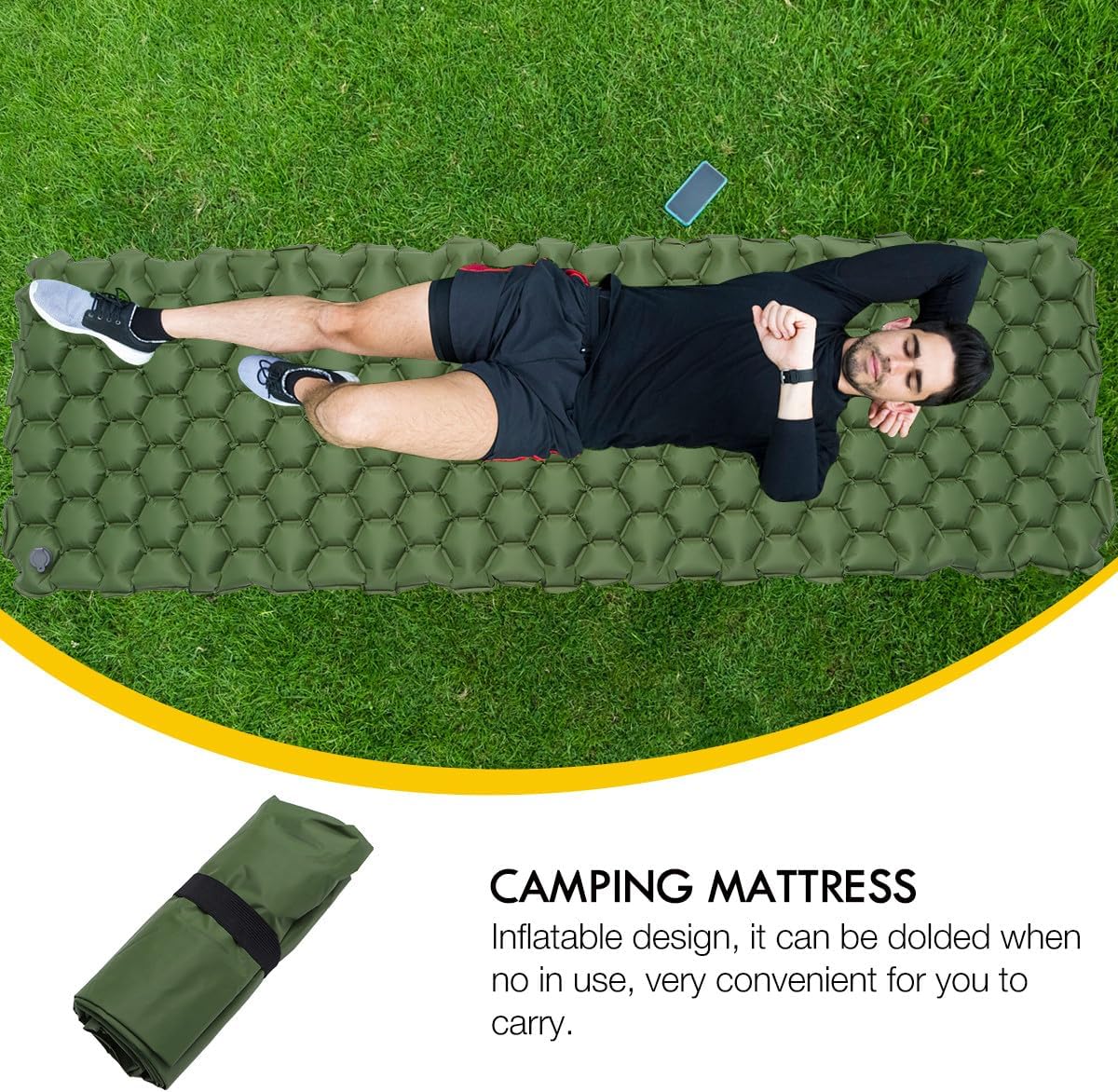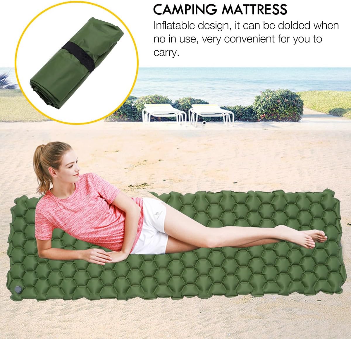 Package List 1 x sleeping mat Characteristics -Color: Green -Size: About192X58X6cm/75.59x22.83x2.36inch -Material: nylon,TPU -Product Info:Waterproof and moisture-proof mat - Lightweight and compact,it is easy to carry Camping Sleeping Cushion. - choice for backpacking, hiking or family camping Camping Mattress. - Made from material, durable to use. - Designed according your body and provide a surface balance for better back support and comfort. - Inflatable design, it can be dolded when no in use, very convenient for you to carry.Goods DescriptionCamping Tent Mat The sleeping mat will offer you extra comfort during outdoor adventures with your families or friends.Inflatable Sleeping Mat The product is made of material, lightweight and portable, easy to carry.Sleeping Pad The sleeping mat is the perfect accessory for the beach, camping, picnic and other activities