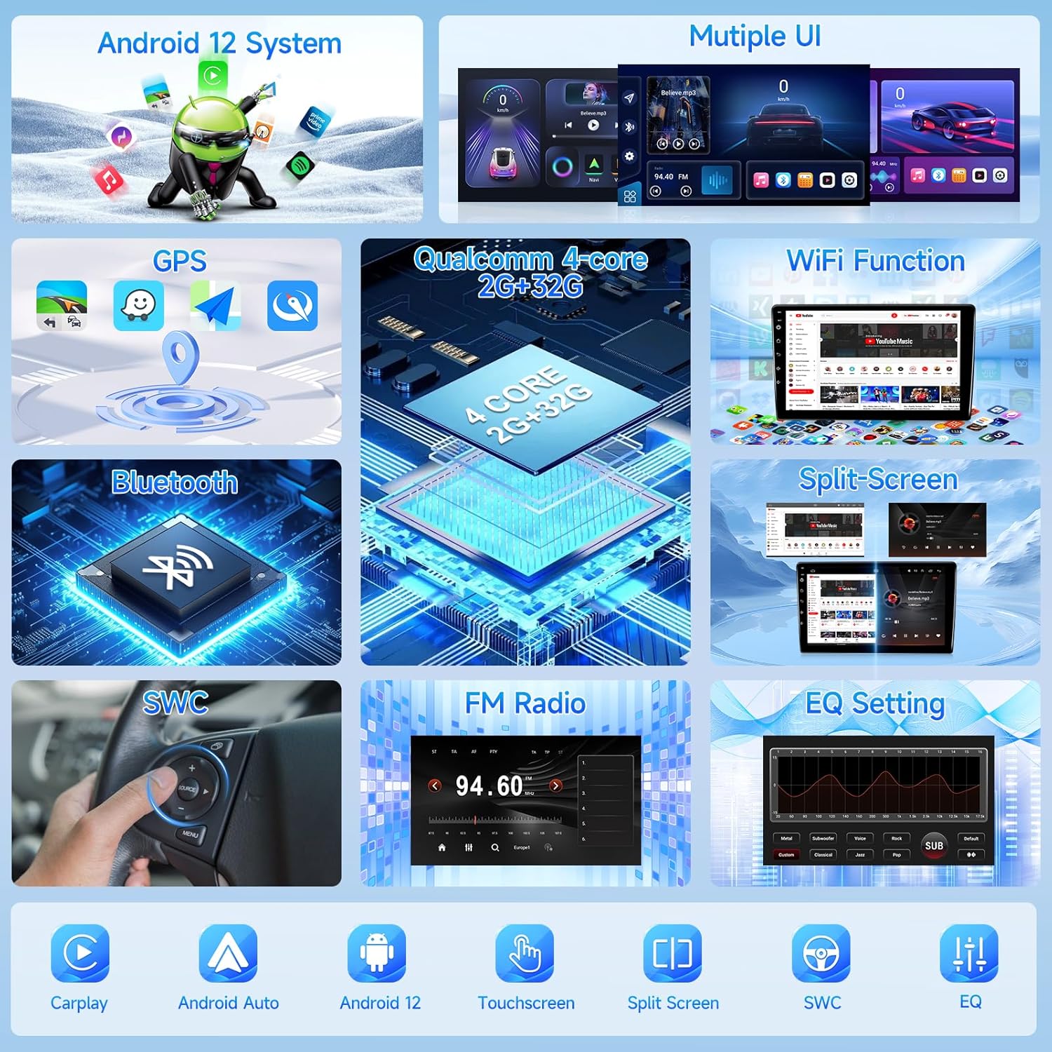 | Additional Features | Bluetooth, Touchscreen, Waterproof, Wireless Carplay &Android auto |