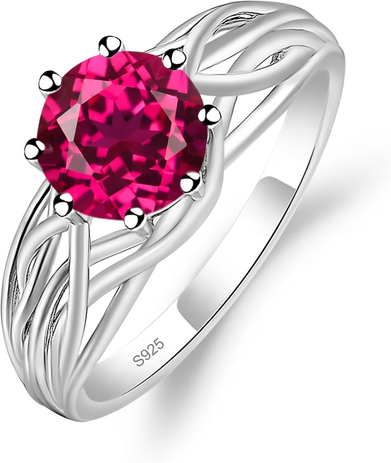 Product Specifications: Ring Height: Approx. 5.5mm (from finger to top of gemstone) Width: Tapered from 6.1mm to 2mm Metal: Rhodium-Plated 925 Sterling Silver All Ring Size: 3-13 This 7mm round cut birthstone ring is also available in various sizes to meet your needs. Gift Package Available-comes in a pink velvet ring box tied with a bow—gift-ready.