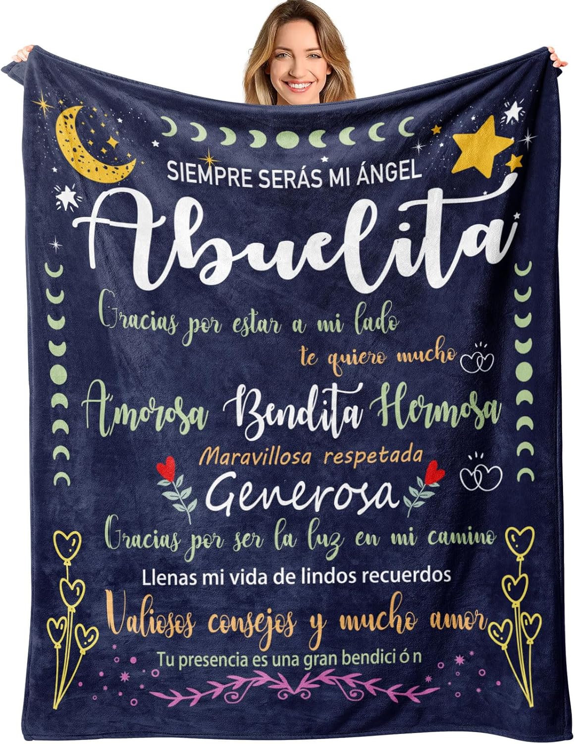 Wrap It Up for Mom: The Ultimate Gift of Snuggles! Finding the perfect gift for Mama can feel like trying to find a needle in a haystack—except the needle is a rich-gold, heart-pumping gift, and the haystack is made of last year’s socks! Enter ourmama-themed blanket, the solution to all your Mother’s Day or birthday gift dilemmas! With its delightful moon, star, and floral designs, this cozy creation not only wraps her in warmth but also wraps her in love.Make Her Smile (and Tear Up a Bit): Let’s face it, moms deserve more than just last-minute hastily wrapped gift cards. This snuggly blanket is your ticket to the No.1 Child of the Year Award (you can totally brag about that over the Thanksgiving turkey). Perfect for birthdays, Christmas, or any day when you really need to score some major brownie points! Cuddle-Worthy Comfort: Our blanket is crafted from high-quality, ultra-soft fabric that feels like a hug from a thousand fluffy kittens. Whether she’s binge-watching her favorite series or enjoying a glass of wine (okay, maybe a bottle), she’ll be snug as a bug! Measuring at 60” x 50”, this blanket is the only ‘weight’ you want to put on her shoulders—just not the “made you a fridge magnet” kind. So go on, gift her this perfect blend of warmth, love, and humor! After all, the only thing better than a cozy blanket is the priceless smile on your mom’s face when she receives it! Grab yourregalos para mamá today and prepare for the hugs to come!