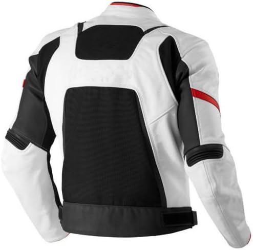 1. 1.2-1.3mm thick drum dyed top-grain cowhide leather for excellent abrasion resistance 2. Pre-curved sleeves for proper riding position 3. Dual stitched main seams for excellent tear resistance 4. Nylon stitching 5. Schoeller Keprotec with Dupont Kevlar(R) at crotch, on inner arms, for perfect fit and ease of movement 6. YKK zippers throughout 7. Removable Hard CE approved armor at shoulders, and elbows 8. Leather stretch panels 9. Mesh lining 10. One inside chest pocket 11. Lightly padded race style collar 12. CE approved padding Sizing: Small Chest 44 Waist 32 Medium Chest 46 Waist 34 Large Chest 48 Waist 36 X-Large Chest 50 Waist 38 XX-Large Chest 52 Waist 40 XXX-Large Chest 54 Waist 42 4XL Chest 56 Waist 44