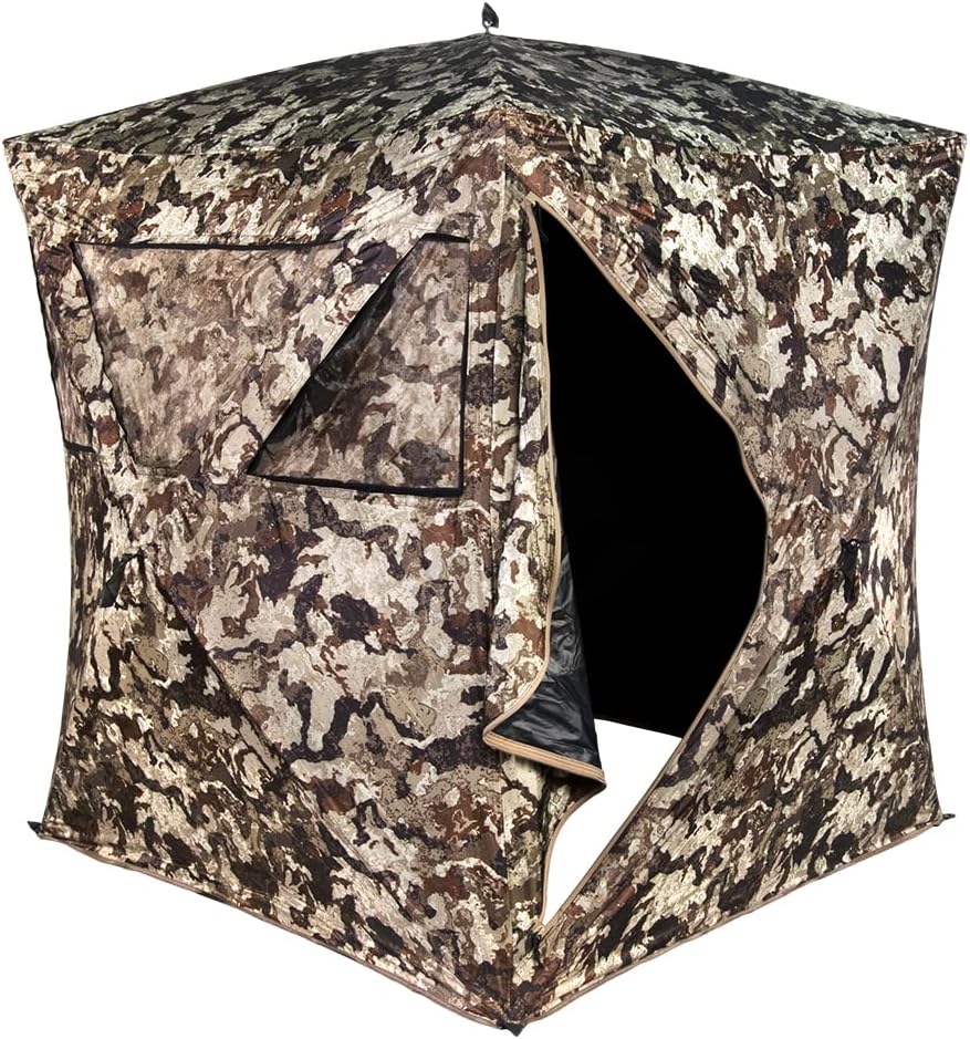 The Muddy Three Person Ground Blind is the perfect ground blind for hunters who prefer company providing you with enough space and concealment. Features of the Three Person Ground Blind: - Construction: Black-backed, watertight 300D fabric in Veil Camo; - Shooting Width: 69" x 69"; - Standing Height: 66"; - 270 Degree Shooting; - Quick-Set Hub System ; - (2) Inside Ozone Gear Pockets. Black-backed interior of the Muddy Three Person ground blind helps to conceal the hunter inside and Veil camo to slip in and out of the ground blind without spooking deer that might be in the neighbourhood. The Three Person Ground Blind from Muddy has plenty of areas to shoot from with 270 degree shooting windows including a rear viewing window and shoot-through mesh. This Three Person blind comes with a carrying bag for easy transportation so you can find the best spot to hunt and with the quick-set hub system you can have your blind up within seconds. The Muddy Three Person Ground blind offers you enough shooting space (69” long x 69” wide) and 66” height that is convenient enough to use with your hunting buddies.