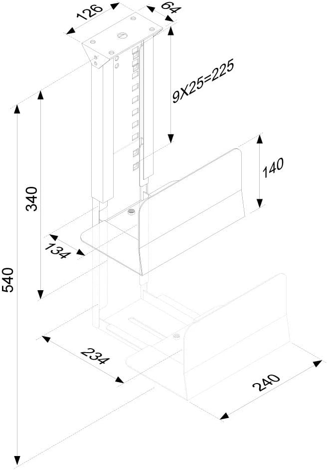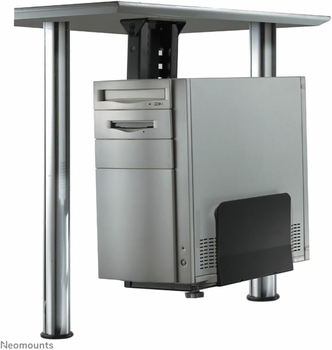 Product Description This NewStar CPU mount, model CPU-D200SILVER, allows you to mount a computer under a desk. A CPU mount creates a need and clean desk because its stored under the desk and doesn’t use any valuable desk space. Increase the lifetime of your CPU due to reduction intake dust and dirt from floors. Keep the workplace clean without computers on the floor.This NewStar CPU mount allows vertical installation of computers. Hide your cables and keep the workplace nice and tidy.Easy to adjust in width and depth to fit most desktop and tower PCs. The specifications listed show maximum and minimum width and depth of the mount.All installation material is included with the product.Newstar have over 20 years experience providing high quality mounts to suit a wide variety of needs. Over our long history we have developed a vast range of mounting solutions, which include the mounting of screens, tablets, projectors, laptops and desktops. One thing that does remain the same across our range is our insistence on high specification materials to ensure optimum reliability for your mounting needs, backed up by the no quibble 5 year warranty. As the old saying goes, "You get what you pay for". Set Contains: Newstar CPU Holder Fixed (Height PC: 39-54 cm / Width PC: 13-23 cm) - Silver