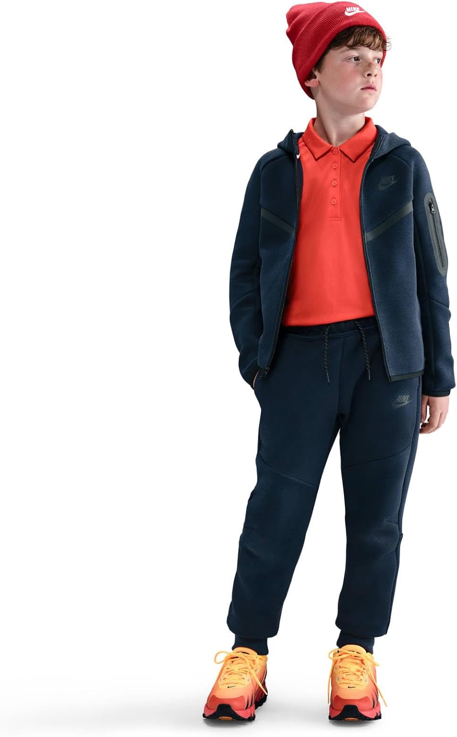Introducing our top-tier lightweight fleece. Smooth on both sides, our Tech Fleece joggers provide ample warmth without extra bulk, keeping you cozy in the cold. Shown in Obsidian/Black/Black, style code HV5869-453. Model wears size M, stands 4'8"/142cm, featuring a standard, easy fit that's full length, hitting below the ankle. Size guide available.