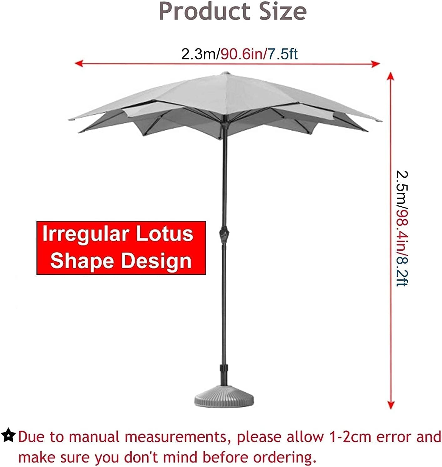 ? Our patio umbrella series is the perfect answer for a bright and sunny day! Umbrella Outdoor Table Umbrella is the leader in making your patio and backyard more comfortable and inviting. ? Features: ● Pool umbrella opens and closes with handle and crank lift operation mechanism. Great for entertaining, picnics, BBQ's, garden parties, beach, camping, or relaxing in the shade. ● This patio umbrella will add years of comfort and style to your outdoor living area. ● Our sun umbrella does not completely block out all of the sun, it shades you completely, but it will still remain bright under the umbrella. ? Specifications: ● Fabric: 100% Polyester ● Ribs: 10 ribs ● Umbrella Bone: Steel ● Main Pole Diameter: 4.5cm/1.8in ? Package Includes: Patio Umbrella × 1 (items shown in product photos are not included) ? Note: ● For safety and to extend the life of your umbrella, outside umbrellas should not be left open overnight or in rain or high wind. ● Due to manual measurements, please allow 1-2 cm error and make sure you don't mind before ordering. ● Please understand that colors may exist chromatic aberration as the different placement of pictures.