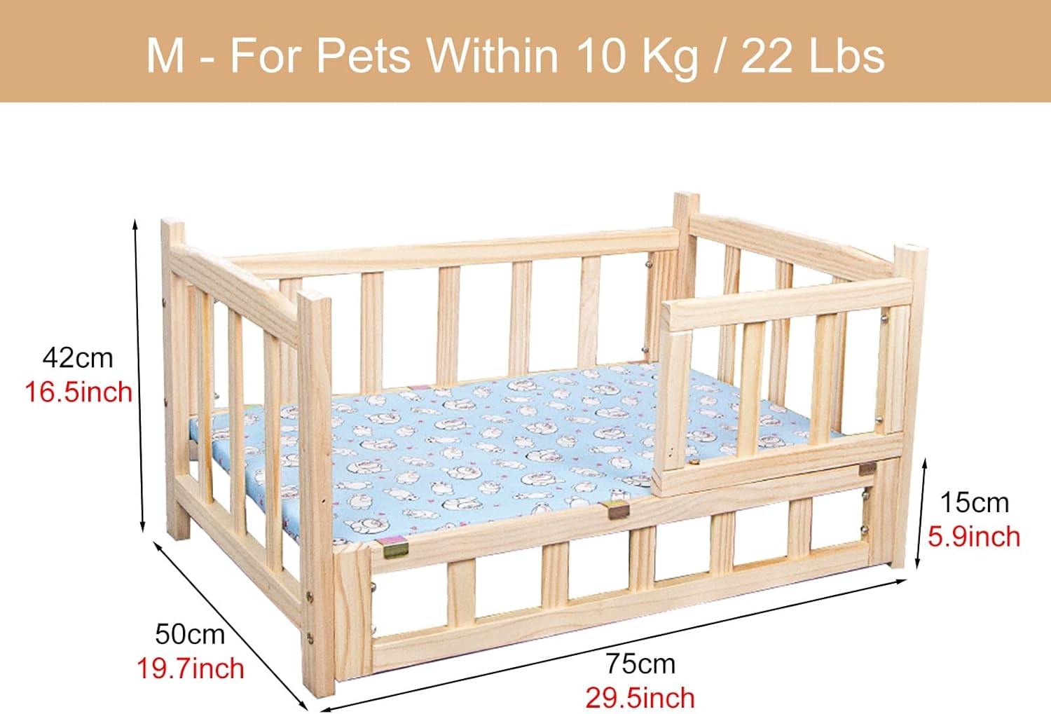 Own this chic pet bed sofa, your pet is a cute princess and prince. Sleeping with an elevated dog bed is more comfortable, cleaner, dryer, and healthier compared to the ground, it is ideal for either dogs and cats, and is the best gifts for your pets.Specification: - Material: Wood Frame + Wood Fiber Bed Board- Type: Elevated Pet BedFeatures: - Keeps your pet away from the cold, tough floor, mud and wet grass. - Solid wood frame, polished smooth, easy to assemble and disassemble. - The slatted base gives your pet sturdy and stable support, without sagging or loss of shape.- Ideal for all breeds and ages of dogs, cats and pets.- Allowing your pet to enjoy a deeper, more restorative sleep.- A perfect gift for your dogs, cats and pets.Package Content: - 1 x Pet Bed - 1 x Pet Mattress- 1 x Pet Pillow (Not including other ornaments).Suggest: - Place a chew toy for your pet, in hopes your dog will chew the toy and not the pet bed!- Please avoid any scratches, we would propose cutting your dog's nails frequently.Warm Prompt:- Pet beds are designed for pet use only.- Due to light and personal differences in color understanding, there will be small color difference, in kind, prevail.- Due to different measurement methods, the error is generally 1-2 cm, and the error range is not within the quality range.Service Guarantee:- We provide high-quality 24- customer service. For any questions about the pet bed, please contact us as soon as possible, and we will answer and solve your questions.