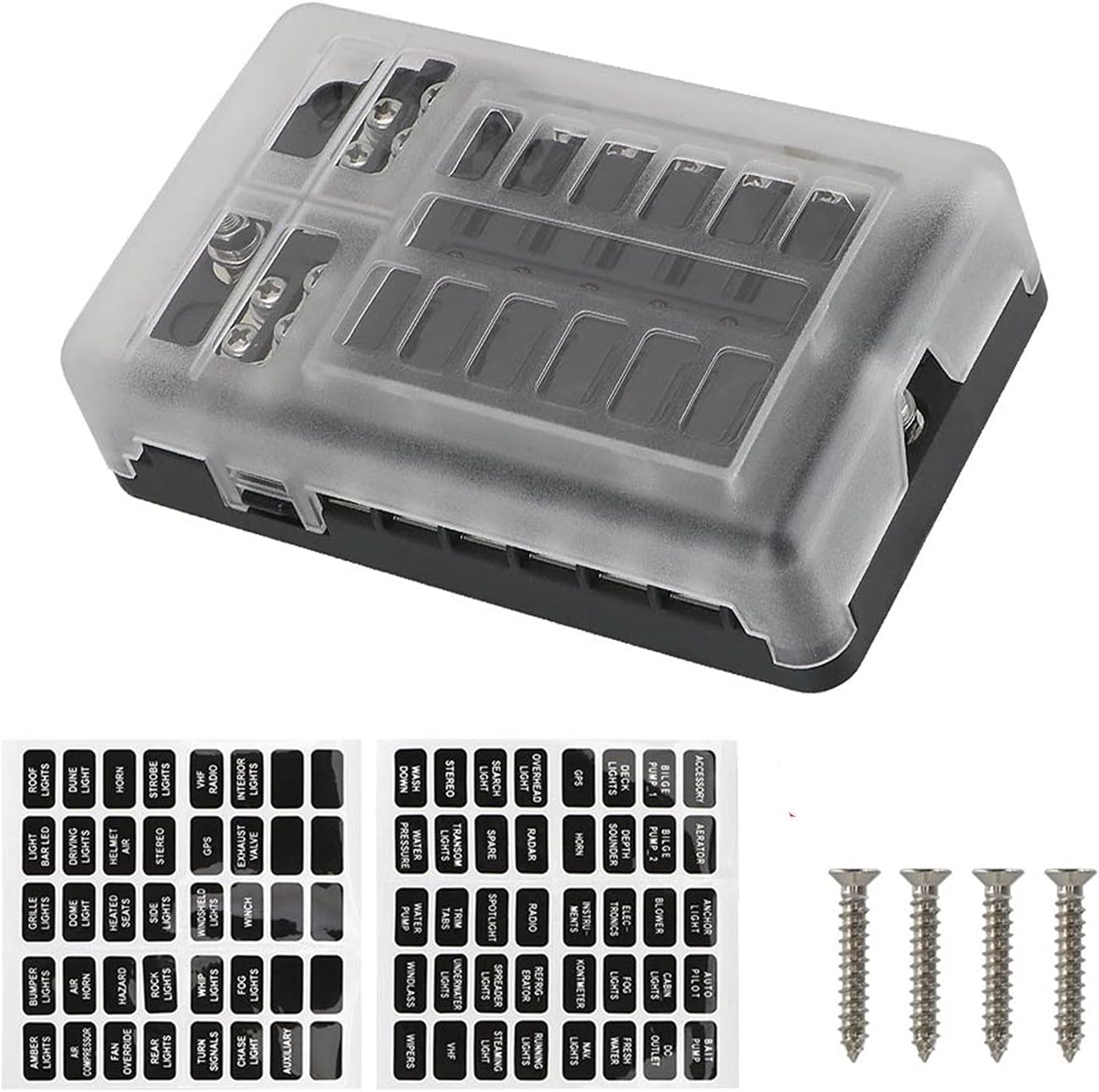 Fusefuse12 Ways Fuse Box:Product net weight: 299gProduct size: 138.25*85*36.5mmInput rated voltage: 32VInput rated current: 100AOutput maximum current: each circuit is 30AMain thread terminal: M5 threaded studSingle thread terminal: M4 threaded studindicator light: when the red LED light is on, it means the fuse has been disconnected, and it needs to be replaced in time to continue runningscope of product installation: it can be used on cars, houses, RVS, buses, yachts, boats, etc6 Ways Fuse Box:Product net weight: 176gproduct size: 87.75*85*36.5mmproduct material: PBT body, PC waterproof and dustproof cover, nickel-plated copper connector, PPX40 stickerInput rated voltage: 32VInput rated current: 100AOutput maximum current: each circuit is 30AMain thread terminal: M5 threaded studSingle thread terminal: M4 threaded studscope of product installation: it can be used on cars, houses, RVS, buses, yachts, boats, etcProduct advantages :1.the product adopts PBT anti-fire material2.all bus and fuse clips are nickel-plated copper with corrosion resistance3.all fasteners are stainless steel.Package included :1 x Fuse Box