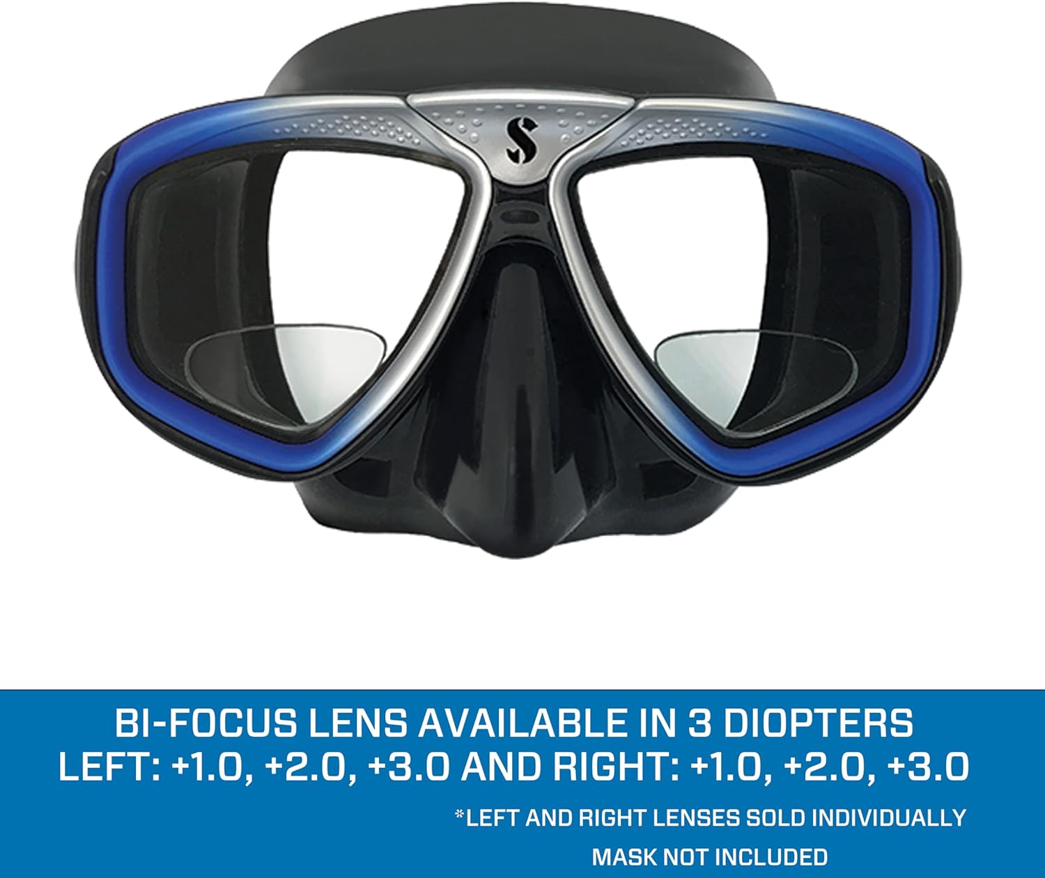 If you dive with a SCUBAPRO Zoom mask and need some optical enhancement, there are a wide selection of glass optical lenses available. Bifocus lenses are available from +1.0 to +3.0 strength to correct for farsightedness.