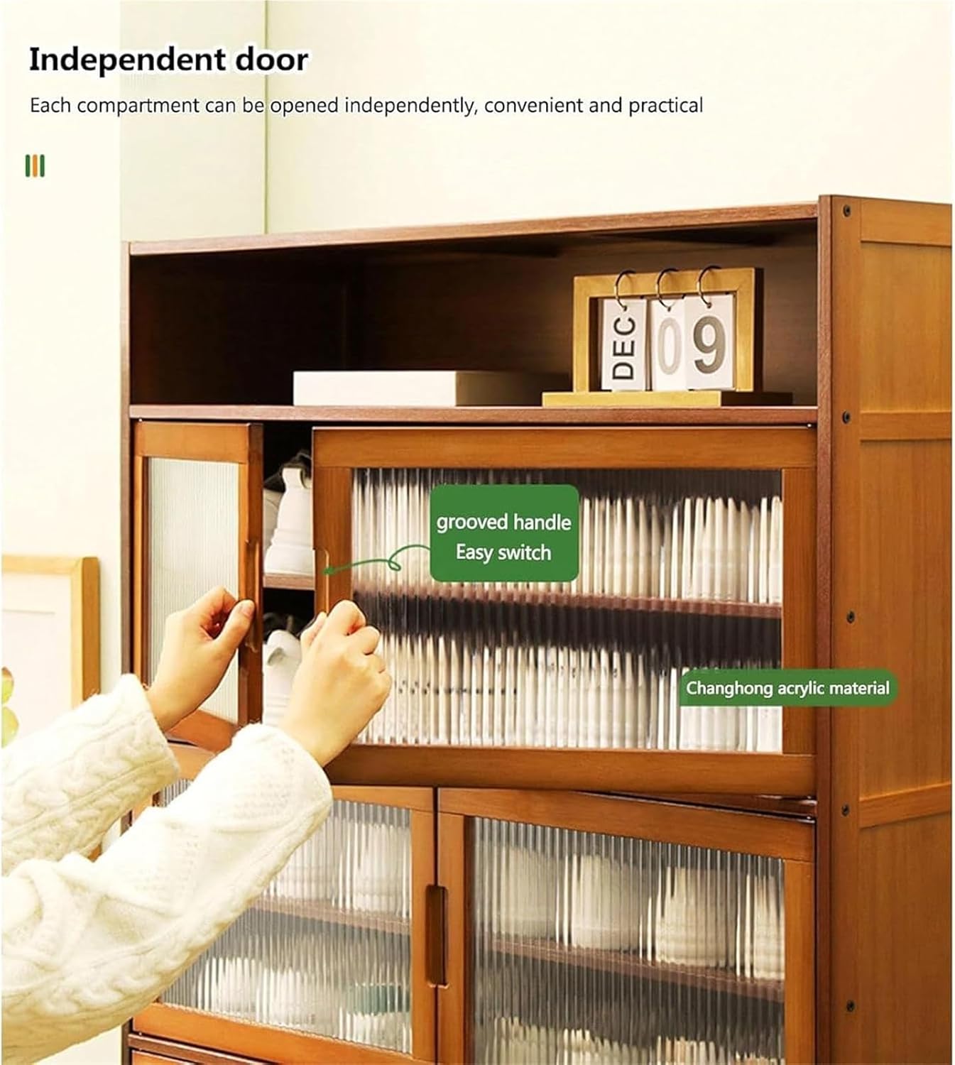 Introducing our stylish and functional Shoe Cabinet, designed to elevate your home organization while complementing your interior decor. This versatile Shoe Rack not only provides ample storage for your footwear but also serves as a decorative surface for bags and accessories. **Key Features:** 1. **Countertop Storage:** The spacious top surface allows you to showcase decorative items or store everyday essentials, enhancing your entryway aesthetics. 2. **Layered Storage:** Thoughtfully designed with multiple layers, this cabinet accommodates shoes and shoeboxes of various sizes, ensuring easy access and organization. 3. **Elevated Design:** The raised base keeps your shoes off the ground, promoting ventilation and hygiene, while also making cleaning underneath a breeze. 4. **Strong Door Suction:** Our cabinet doors are equipped with powerful suction, ensuring they close securely and maintain a sleek appearance. 5. **Perfect Size:** With dimensions of 68/97/126 cm, this shoe cabinet is the ideal fit for most shoe types, from sneakers to heels, making it a practical addition to any home. **Why Choose Our Shoe Cabinet?** Imagine coming home to a clutter-free space where your shoes are neatly stored away. This cabinet is perfect for busy families or individuals who value organization and style. Its modern design seamlessly integrates into any room, whether it's an entryway, bedroom, or mudroom. Invest in our Shoe Cabinet today and transform your living space into a tidy and welcoming environment. Say goodbye to shoe chaos and hello to elegance and convenience! (Note: Actual product color may vary slightly from images due to lighting. Manual measurements may have a 1-2 cm error. This listing is for the shoe cabinet only; other decorative items are not included.)