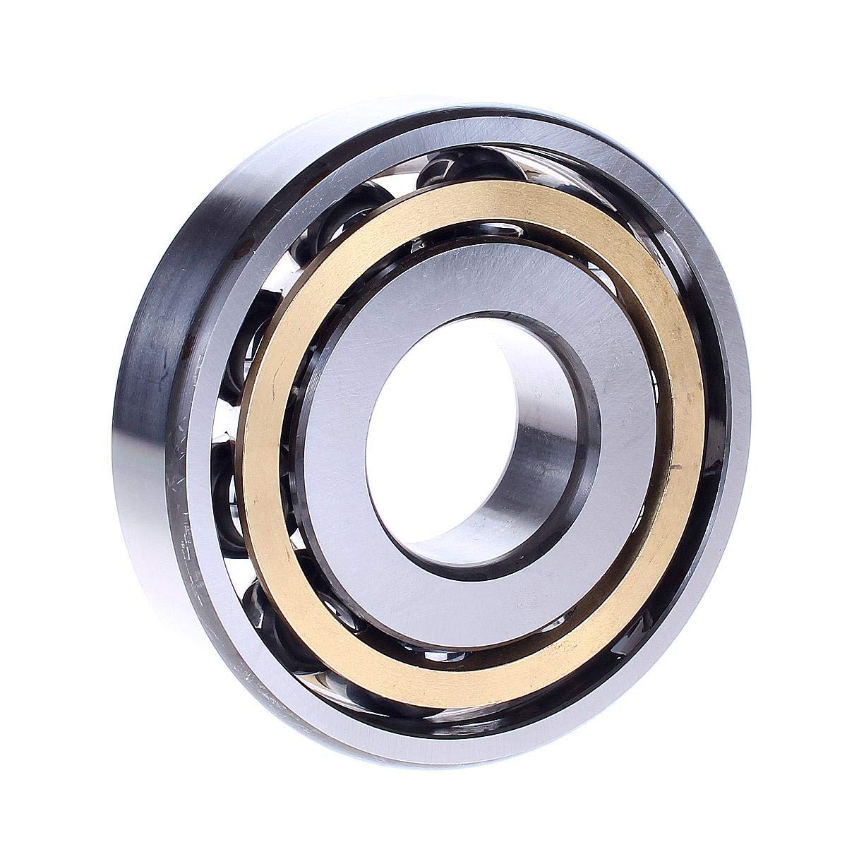 The SKF heavy series single-row angular contact ball bearing is an open bearing with a 40-degree contact angle, brass cage, normal clearance rating, and Annular Bearing Engineering Committee (ABEC) 1 precision. It supports one-directional thrust loads and combined radial and thrust loads where the thrust load is predominant. This bearing is made of low-alloy, through-hardened carbon chromium steel for durability and resistance to deformity. The 40-degree contact angle of the balls in relation to the raceways gives the bearing a greater capacity for supporting thrust loads than bearings with a lower contact angle. Its open design facilitates lubricating the bearing in place and dissipating heat. This bearing has a brass cage to prevent the balls from coming into contact with each other during use, reducing friction, vibration, and noise. The bearing has a normal axial internal clearance designation, making it suitable for applications where the load and speeds do not result in thermal expansion. This clearance provides latitude for self-realignment and compensates for static and dynamic alignment errors. Additionally, the running accuracy and performance levels for this precision bearing meet Annular Bearing Engineers' Committee (ABEC) 1 (ISO P6) standards for a moderate level of precision. ABEC-rated ball bearings are manufactured to tight dimensional tolerances, making them useful in applications that require high accuracy, high rotational speeds, and increased operating efficiency. This angular contact ball bearing is for use in commercial and industrial applications, including pumps and compressors, automotive drives, gearboxes, and printing machines.Rolling bearings use rolling elements to maintain the separation between moving parts to reduce rotational friction and support radial and axial loads. These elements can be one of the following types: ball, cylindrical, spherical, barrel, needle, spindle, or tapered. All rolling bearings are open, shielded, or sealed. Sealed bearings are lubricated with oil or grease in the bearing factory, while open and shielded bearings are meant to be lubricated in place, with periodic reapplication of lubrication, based on use. The shield protects the working parts of the bearing from environmental debris that may be introduced and could reduce the ball bearing speed and lifespan. Rolling bearings are used in a range of applications from agricultural machinery to conveying equipment, robotics, dental equipment, elevators, rolling mills, ship rudder shafts, and aggregate crushers, among others.SKF manufactures bearings, seals, and lubrication systems for automotive, OEM, energy, and other and industrial applications. The company, founded in 1907, is headquartered in Gothenburg, Sweden, and meets International Organization for Standardization (ISO) TS 16949 and 9001 standards for quality assurance.