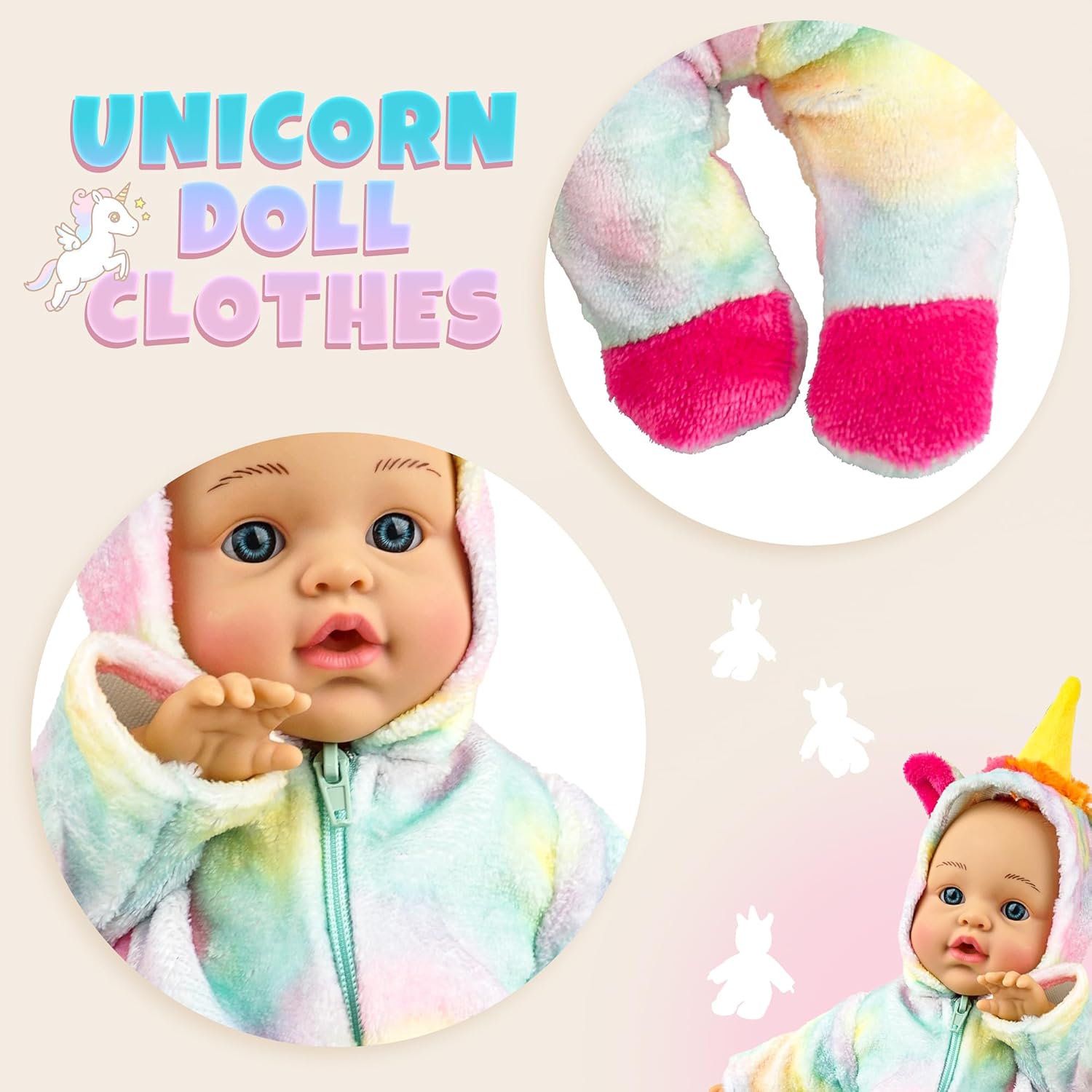 6 Set Dolls Clothes Outfits Jumpsuits, 12 Inch Soft Body Baby Doll for Toddlers with Take Along Doll Backpack Carrier