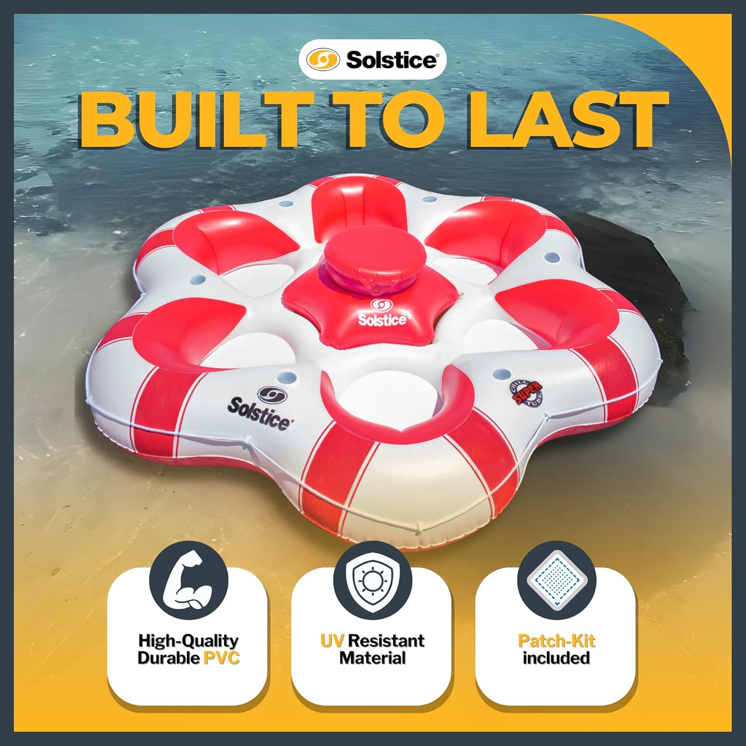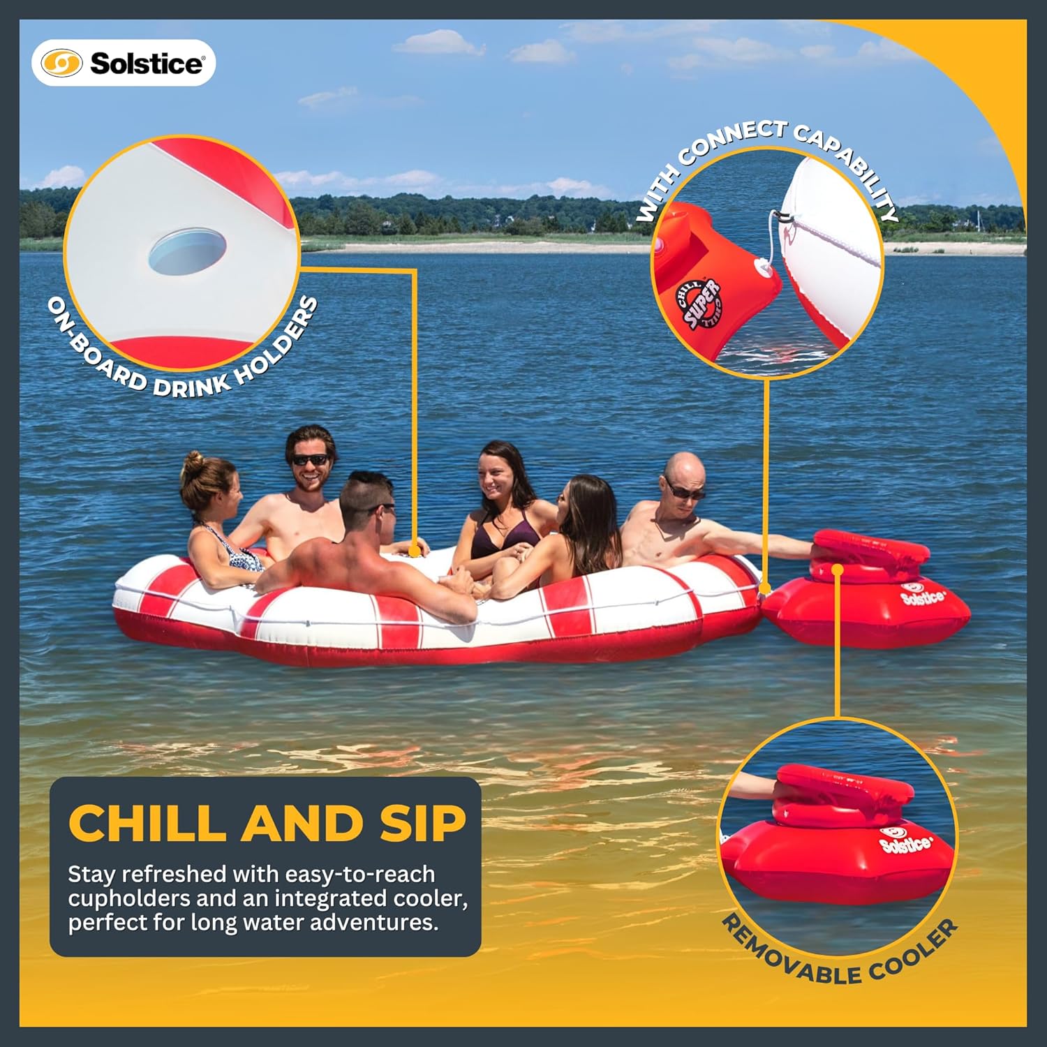 Superchill tubes are the perfect accessory for all your water adventures, whether you're floating down a lazy river, lounging at the lake, or soaking up some rays at the pool. Crafted from super-tough materials, these inflatable tubes are built to handle all kinds of water conditions, from bumpy rapids to rocky shores. Their mesh bottom keeps you cool and relaxed, while the built-in backrest allows you to kick back and enjoy the ride. It's like having your own perfected lazy river accessory, but way cooler. With models ranging from 1 person all the way up to lounger rafts accommodating up to 6 at a time, there's plenty of options with room to stretch out and get your tan on, while enjoying with friends and family. Cupholders ensure that you stay hydrated and refreshed throughout your water adventure, and they're strategically placed within easy reach so you never have to go without your favorite beverage. This is especially useful for extended river floats or lake outings where access to drinks may be limited. And the larger sizes ALSO come with built-in cooler systems to cover the needs of everyone riding along. Inflation is a breeze - just use your air pump (not included), and you'll be ready to float in no time. And when you're done soaking up the sun, deflation is quick and easy too, so you can pack up and head home with ease. Plus, their two heavy-duty handles make it easy to hop on and off the tube, steer through tricky rapids, or simply hold on tight during the wildest parts of your adventure. Whether you're a seasoned kayaker or a casual water enthusiast, these tubes offer an excellent way to unwind and relax on the water. Its robust design, ergonomic features, and ease of use make it an excellent investment for individuals or families seeking to elevate their water experience. So, grab your shades, sunscreen, and your squad, and get ready for some seriously awesome fun in the sun!
