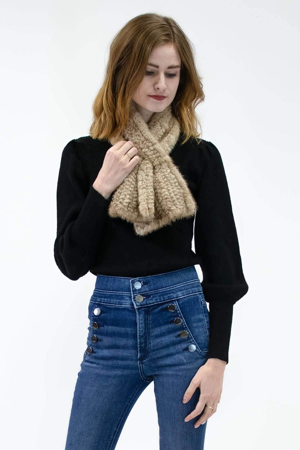 Since 1979, discriminating shoppers at America's leading retailers have come to recognize Surell as one of the most desirable names in fur fashion and clothing accessories. Feel warmth and confidence as you step out with Surrells Luxurious 35" long Knit Mink Fur Fur Pull-Through Scarf. This neck wrap will make a statement at your winter event or wedding! The perfect elegant and fashionable gift for all occasions!