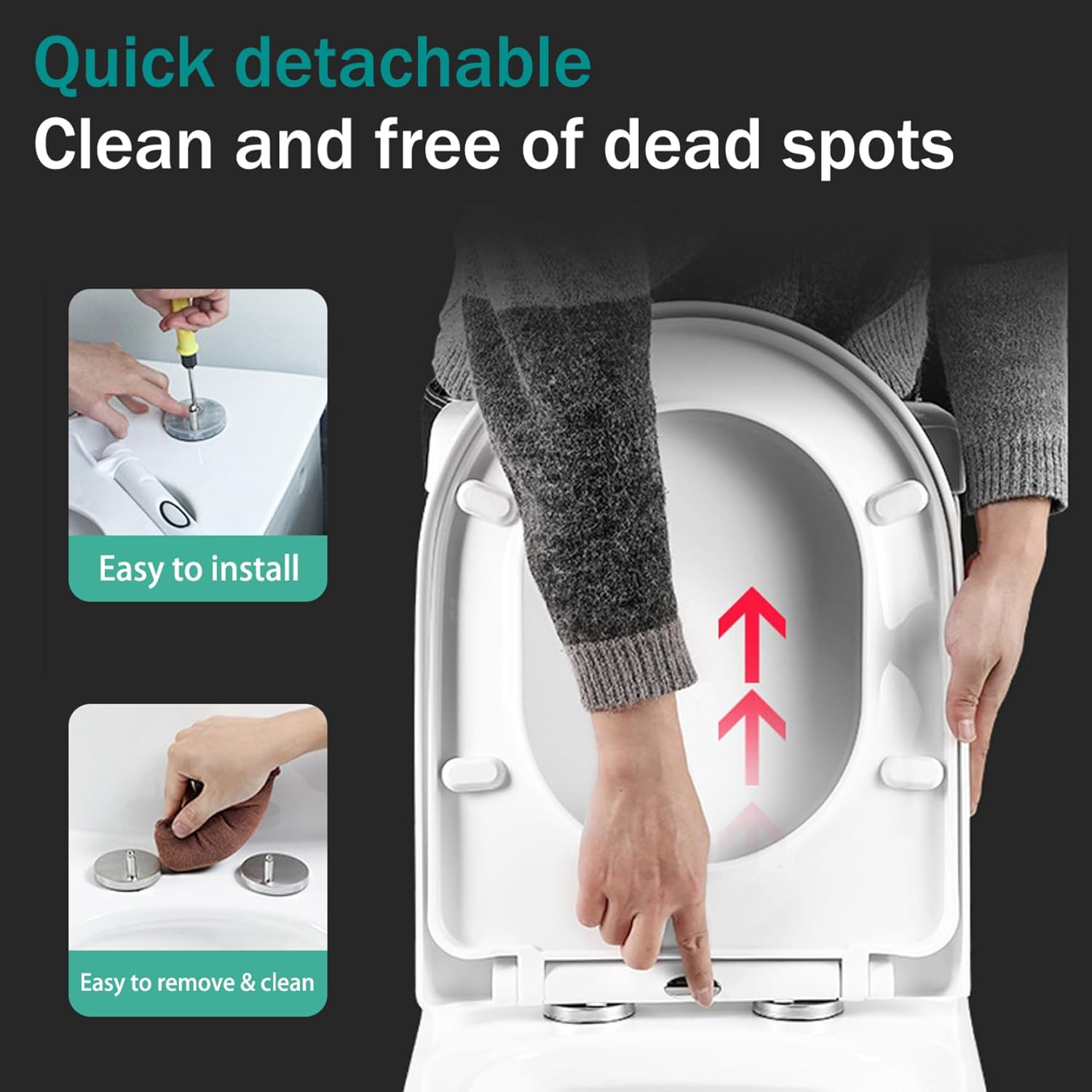 Description: This toilet seat combines functionality, convenience, and durability to enhance your bathroom experience. With its standard U-shaped design, it fits most U-shaped toilets available on the market, ensuring compatibility and ease of installation. The quiet and slow-close mechanism prevents any loud slamming noises, promoting a peaceful environment and protecting the toilet from potential damage. The convenient installation and quick-release design make cleaning and maintenance hassle-free. Made from quality PP material, the seat is sturdy and easy to clean, providing long-lasting performance. Whether you're looking to replace your current toilet seat or upgrade to a better option, this toilet seat offers a reliable and comfortable solution. Enjoy a quiet and comfortable bathroom experience with this quality toilet seat that combines practicality, convenience, and durability. Features:. Toilet Seat. -Color: White. -Material: PP. -Size:. Cover Plate: about 45x36.5cm/17.72x14.37inch. Hole Spacing Range: about 10-23cm/3.94-9.06inch. Length Adjustable Range(Hole to Lid Tip): about 41-48cm/16.14-18.90inch. Note: Manual measurement, please allow slight errors on size. The colors may exist slight difference due to different screens. Package Including 1 Piece Toilet Seat.