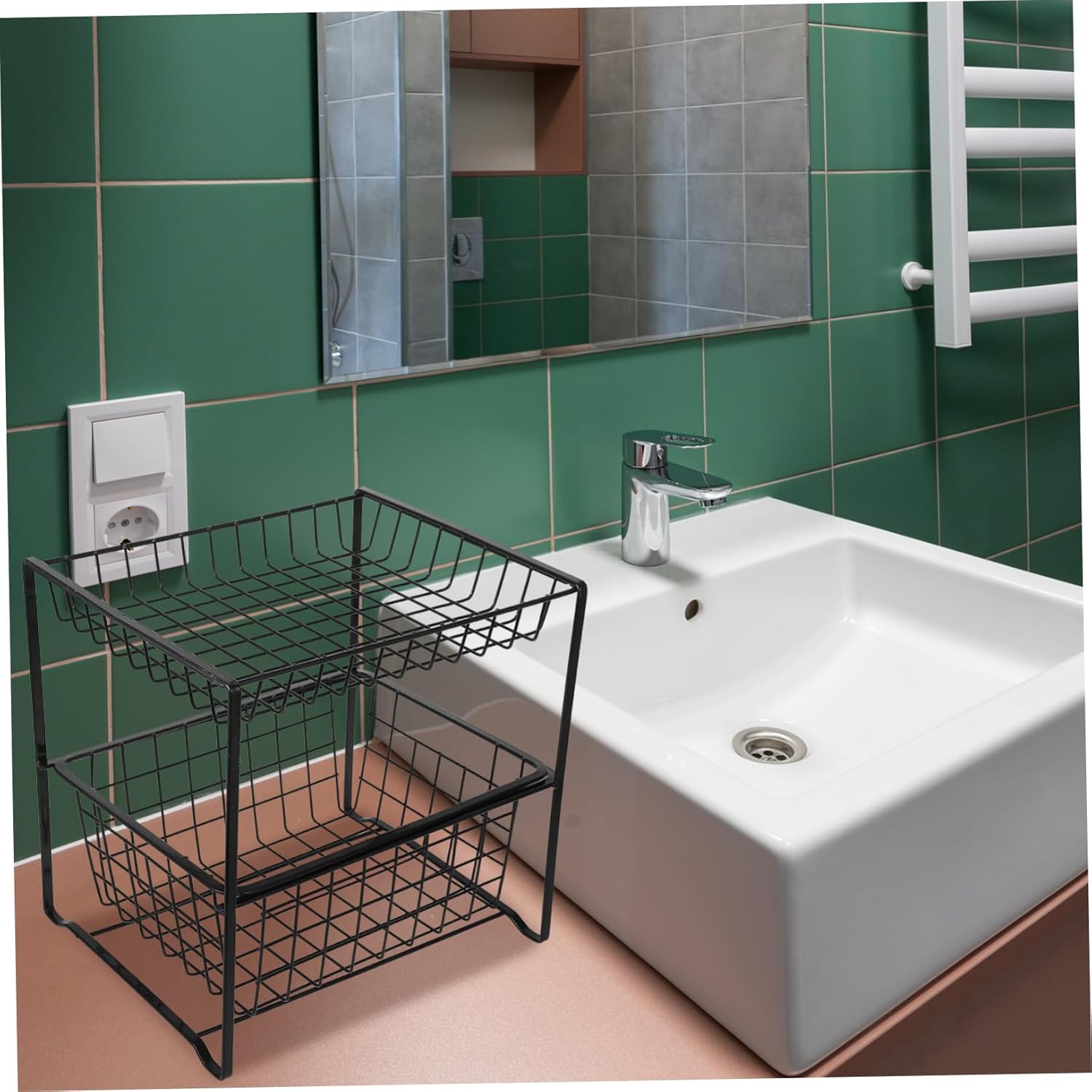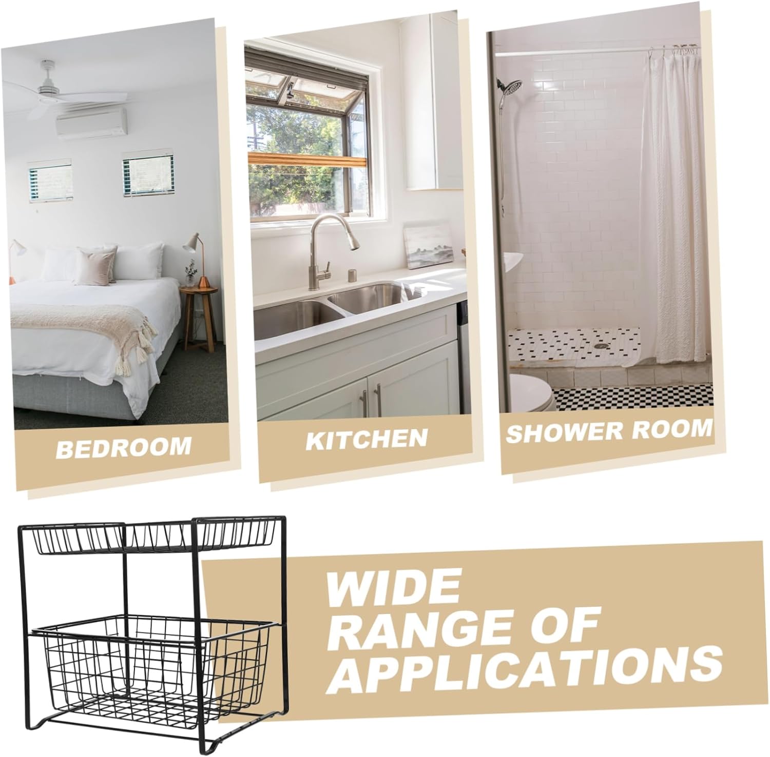 Package List 1 x storage rack Characteristics -Color:Black under bathroom sink organizer -Userfriendly design: ensuring easy access to your stored items without any hassle kitchen counter organizer -Iron: this under sink organizer is built to last, providing a storage solution for your home bathroom organizers and storage -Multifunctional use: ideal for storing a wide range of items, including cleaning supplies, toiletries, and kitchen tools, this organizer is perfect for use in various rooms of home bathroom storage -Optimized storage space: the design maximizes storage capacity, allowing you to keep your kitchen or bathroom essentials neatly organized and easily accessible under sink shelf -Material:Iron under sink organizers -Size:28.00X28.00X23.30cm/11.00X11.00X9.16in shower shelves -Easy installation: you can quickly and effortlessly set up this organizer in any undersink or cabinet space storage under sinkGoods Informationbathroom storage With its shelving, you can easily categorize and store your items, maintaining a clean and organized environment.cabinet organizer The design allows for efficient use of space, making it suitable for both kitchen and bathroom storage needs.sink shelf This under-sink organizer is crafted from sturdy iron, ensuring durability and reliability