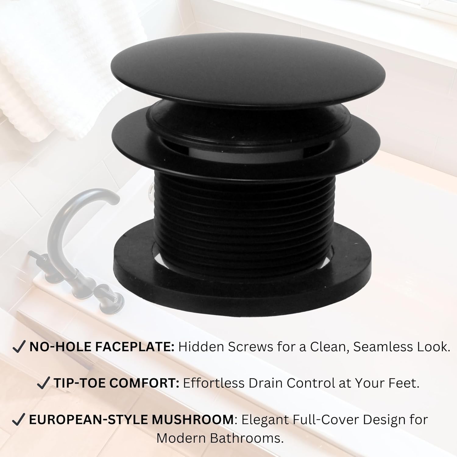 | Item Type Name | 1-1/2" NPSM Coarse Thread Mushroom Tip-Toe Bathtub Drain Stopper with Illusionary Overflow Faceplate |