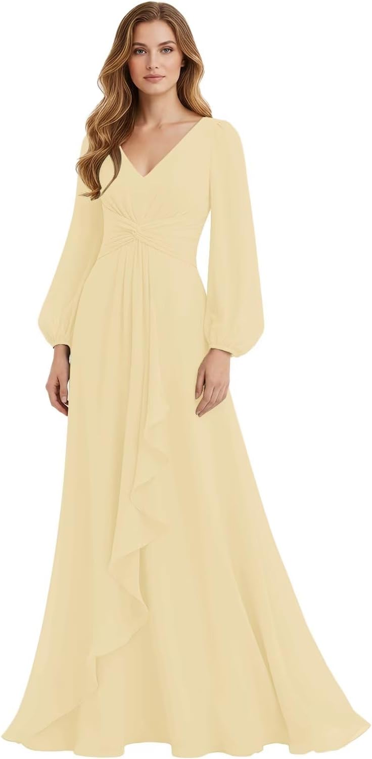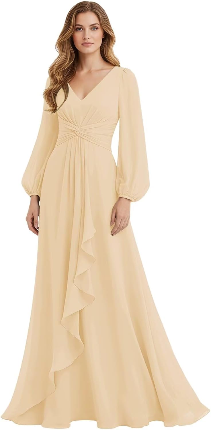 Welcome to IMCACTOR! IMCACTOR is a garment manufacturer specializing in clothing. Our products include prom dresses, homecoming dresses, bridesmaid dresses, evening dresses, wedding dresses, mother of the bride dresses, formal evening party gowns,and other high-quality dresses that are elegant and charming. Item Description Fabric: High-Quality Soft Chiffon and 100% Handmade. Sleeves: Long Sleeve Dresses Length: Floor Length Silhouette: A-Line Neckline: V-Neck Back Design: Lace Up Back Customized Services: If you want to customize the dress,please complete the format when you place the order. 1.Bust: ___inch 2.Waist: ___inch 3.Hips: ___inch 4.Shoulder to Shoulder: ___inch 5.Hollow to floor without shoes: ___inch 6.Height: ___inch Notes: 1. Due to the difference in pixel color between computers and mobile phones, the color of the dress you will receive may be slightly color different from the color displayed on the website. 2. Due to manual measurement, please allow a 1-3cm difference.