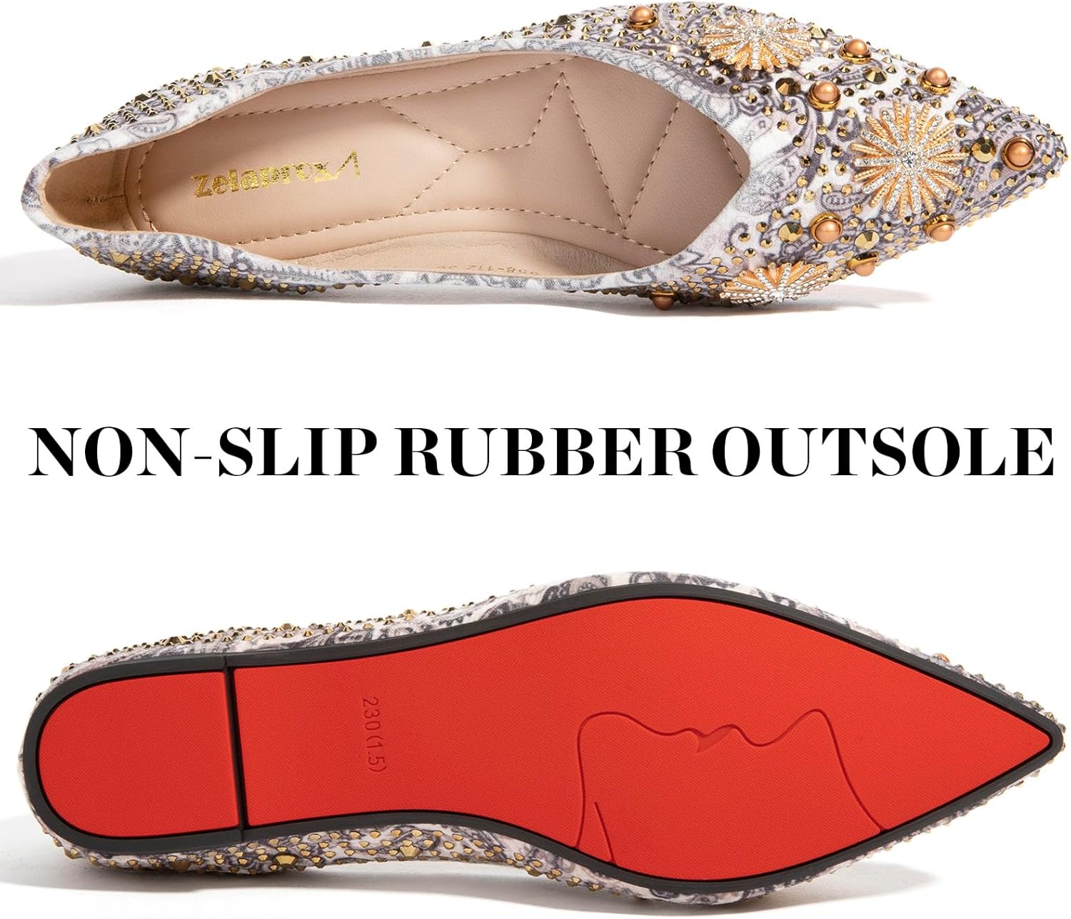 Zelaprox Women's Flats Shoes Rhinestone Pointed Toe Flats Comfort Low Wedge Dressy Flats Silver Bowknot Flats Light Weight Casual Ballet Shoes